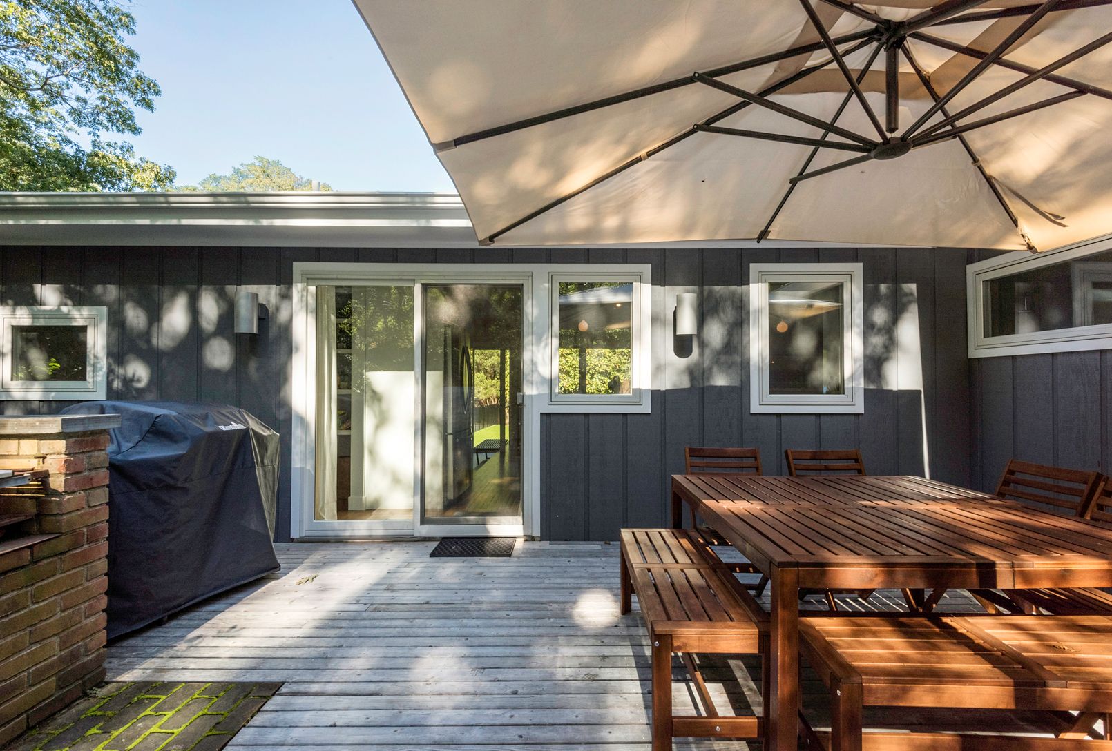 Nestled between the vibrant village of Amagansett and the prestigious East Hampton, this exquisitely renovated single-family residence offers four bedrooms and three baths. The property boasts a heated pool and a cozy fireplace, creating an idyllic retreat. The open floor plan is accentuated by a striking wall of windows, inviting an abundance of natural light to illuminate the interior. Conveniently situated near numerous bay beaches, this st