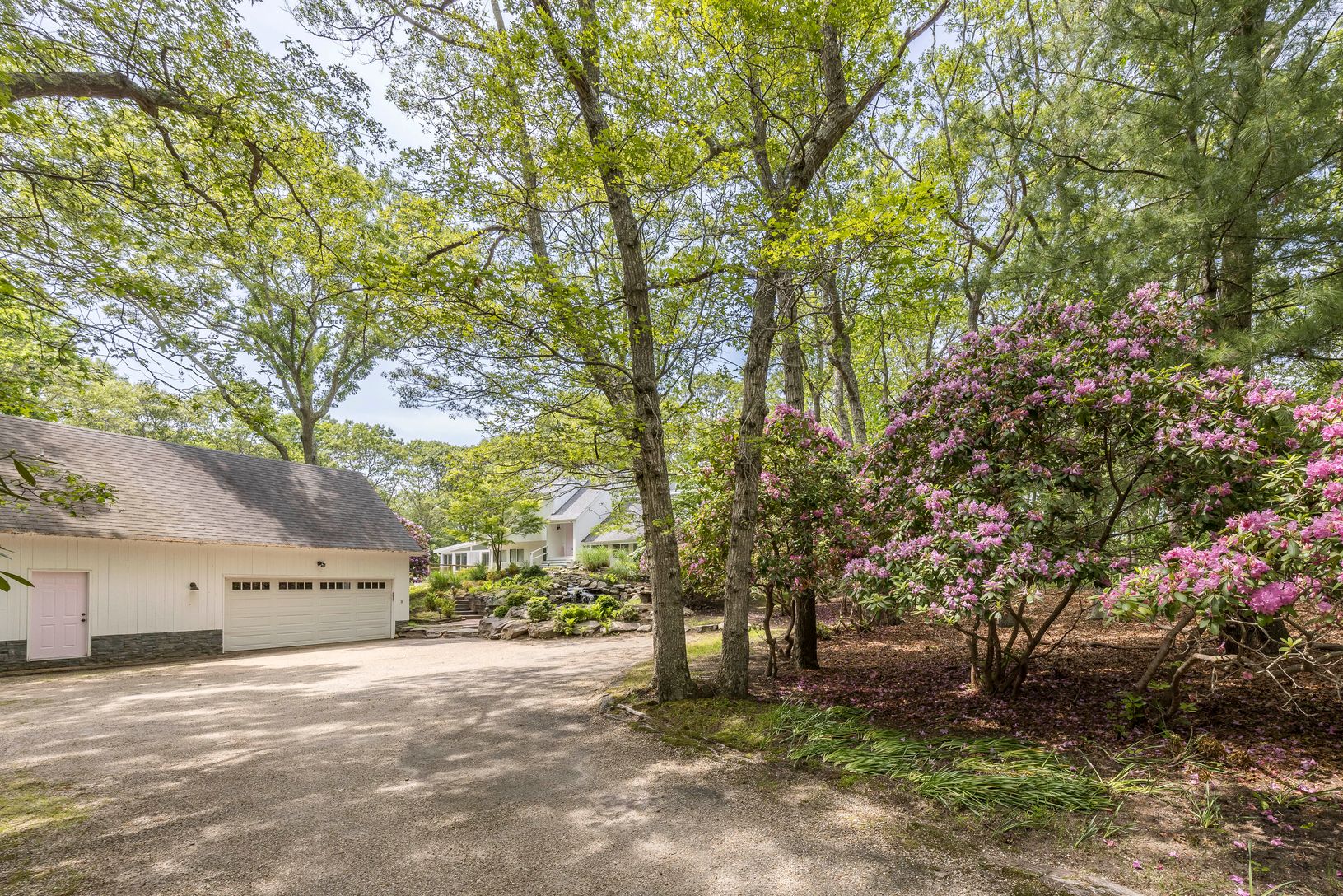 This newly updated 3-bedroom, 3-bathroom home in East Hampton is a secluded hilltop retreat, offering ultimate privacy on 1.9 acres. The interior is bright and modern, featuring white floors and walls that complement the home's sunny, open atmosphere.