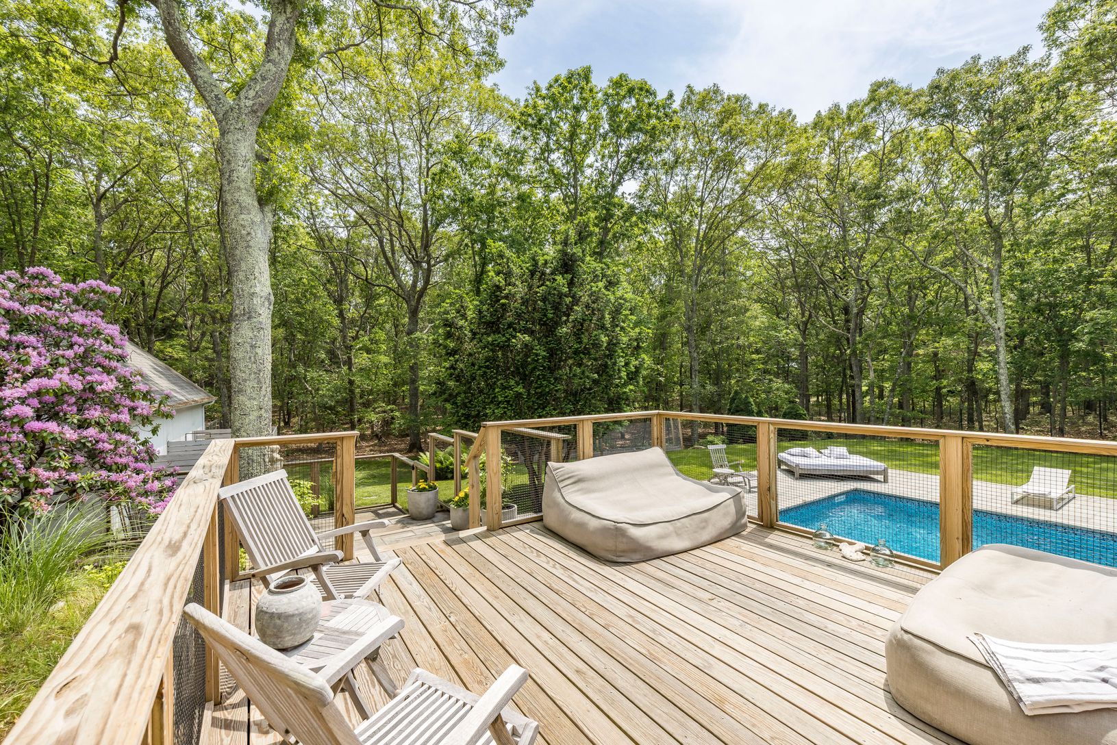 The property boasts a 20x40 ionized pool with a bluestone deck perfect for summer relaxation. Inside are multiple living spaces, including two living rooms downstairs, a sunroom, and an up