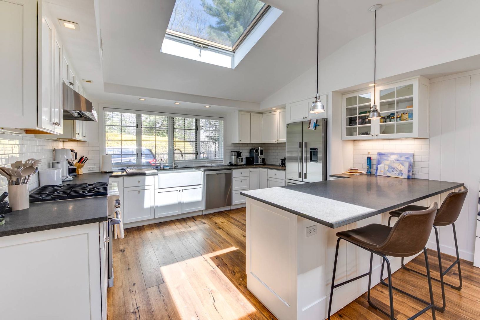 Set on a shy acre of lush, private grounds, this 2,000 sq. ft. cottage is newly refreshed and move-in ready for summer. Located near the Springs Historic District, the home has been thoughtfully updated with a brand-new kitchen, renovated baths, and designer furnishings throughout. Natural light fills the interior through multiple skylights and vaulted ceilings, creating a bright and airy atmosphere. The layout includes 3 spacious bedrooms, 3