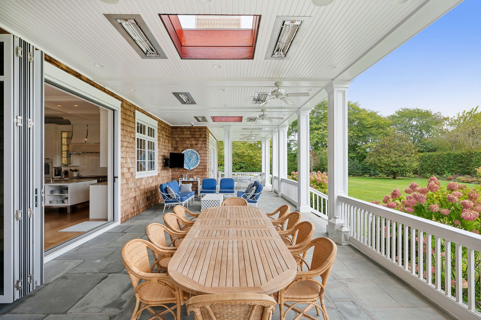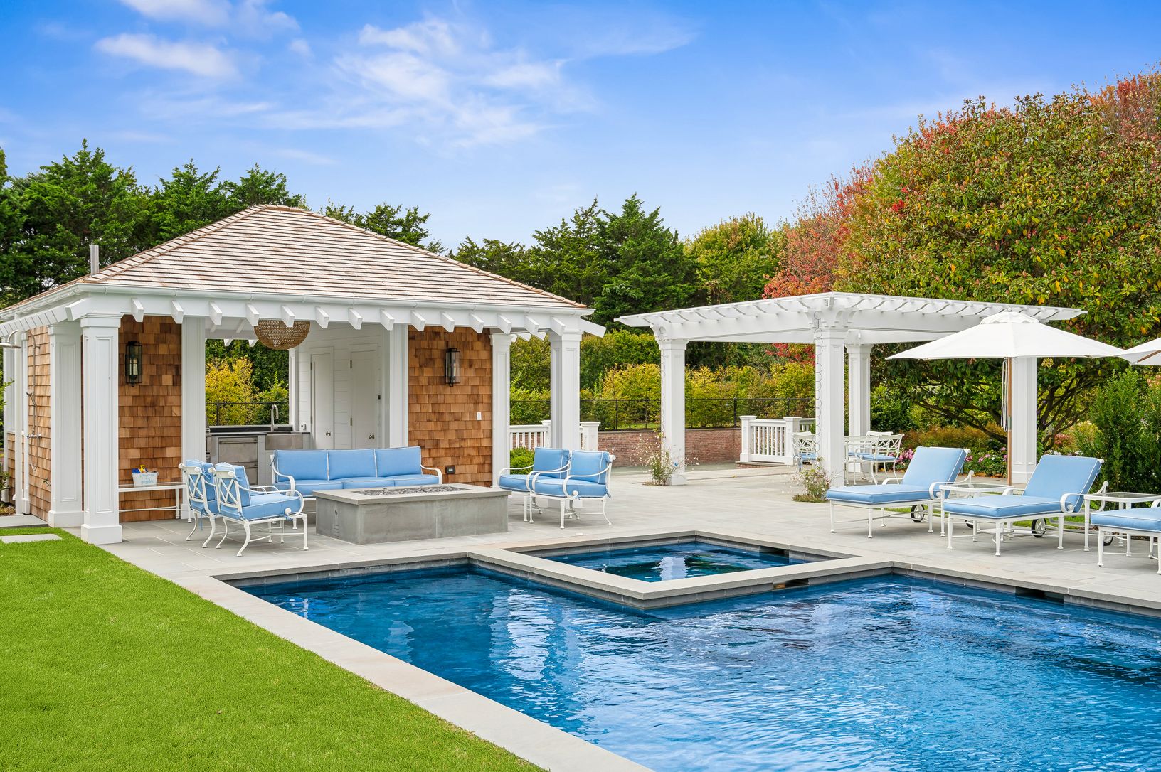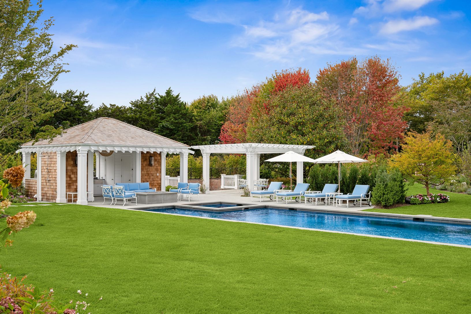 Prestigious Further Lane estate on 2 acres+/- featuring a 9,795 SF+/- home with 10 bedrooms, 10 full and 2 half bathrooms. Recently expanded and finished with elegant architectural details, the residence is designed for seamless indoor-outdoor living with NanaWalls opening to a year-round covered porch, a newly constructed 55' heated gunite pool with spa, and a newly built chic pool/tennis house with outdoor kitchen and bathroom. An additional
