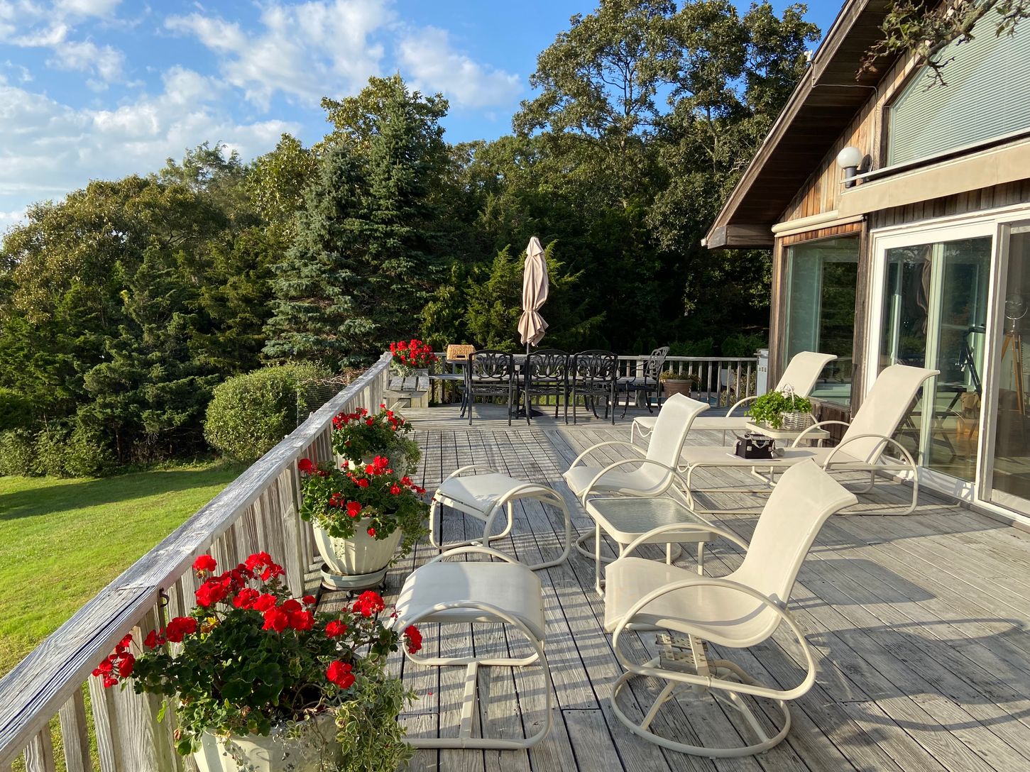 Experience Hamptons Luxury in this stunning waterfront contemporary with private dock and panoramic sunset views over Three Mile Harbor. Sited on a .65-acre parcel, this elegant 4-bedroom, 4 bath residence offers a seamless blend of sophistication, comfort, and modern design. The spacious 3,000 sq. ft. home features sun-drenched interiors, first and second floor primary suites, central air conditioning, and a fireplace for cool summer evenings