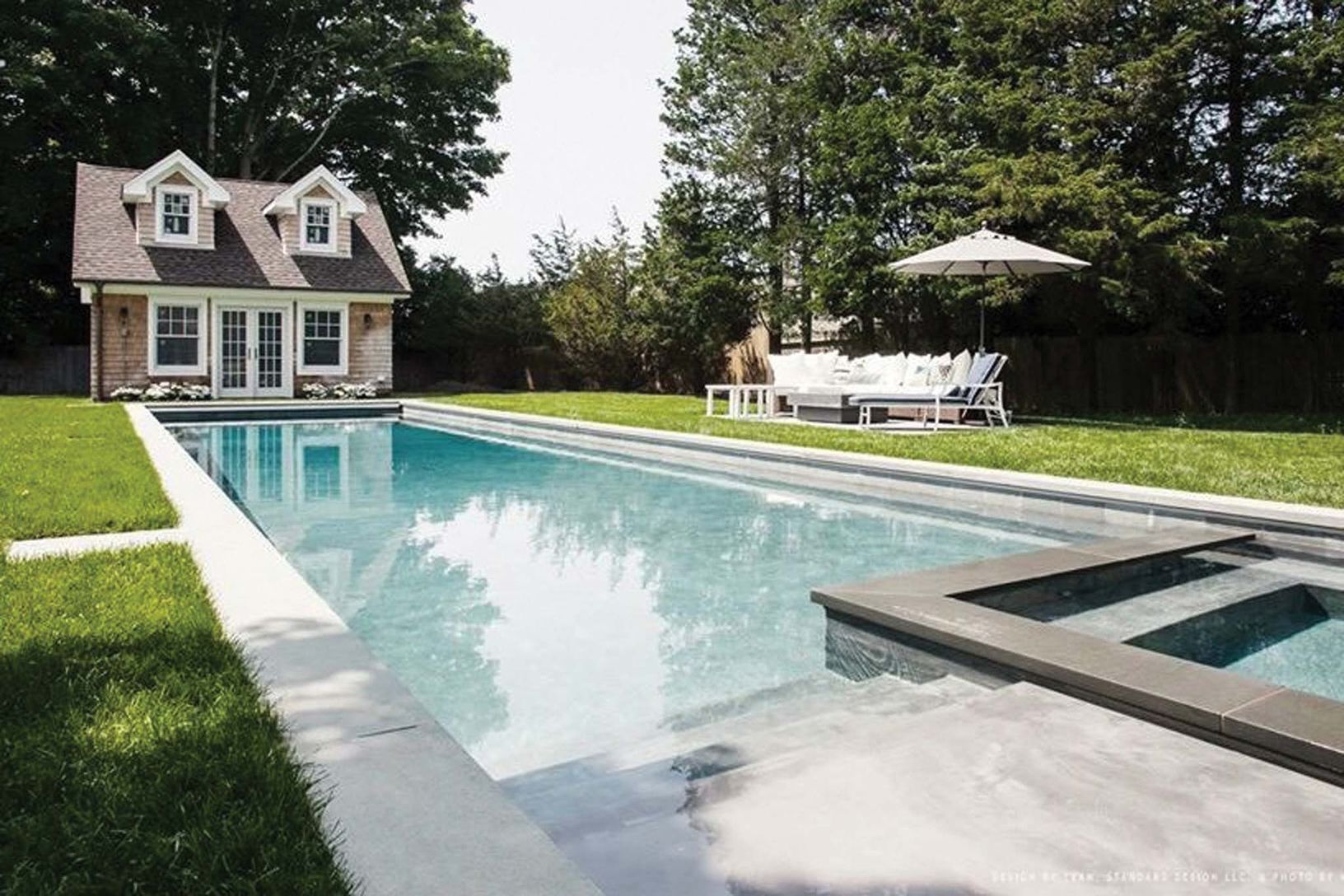 Fall in love with everything in this newly renovated and furnished 4 bedroom, 4 bath modern East Hampton beach cottage. Play chess on the outdoor 18 foot x 18 foot chess set, swim in the 16x60 gunite saltwater lap pool or relax in the 8x8 gunite spa by your pool house with half bath. When you need to come inside, the wide open flowing spaces capture natural light from every direction - in the entry foyer, living room, dining area and the great