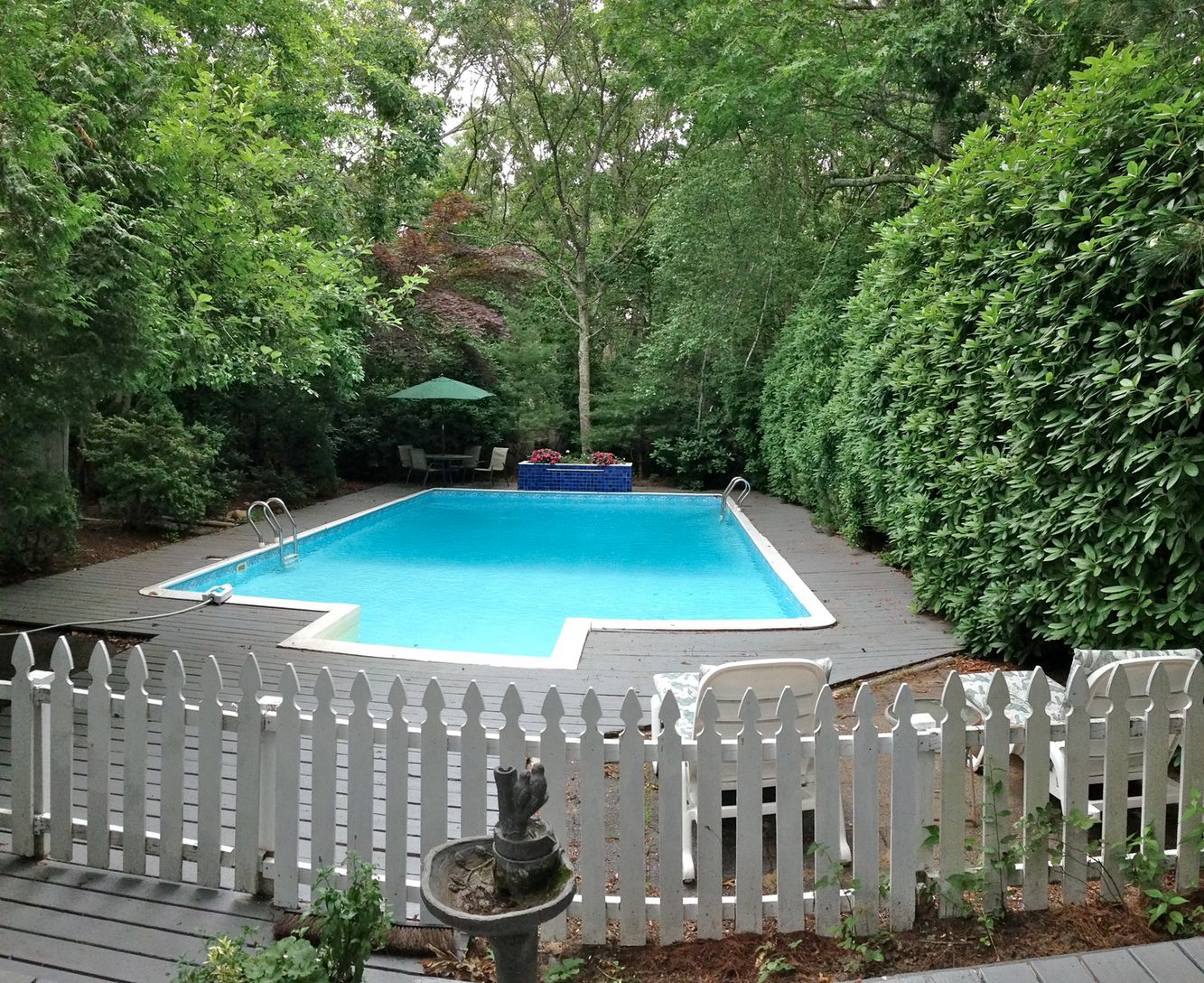 Privacy is exceptional in this expanded welcoming home, just recently renovated! The gardens are magnificent with mature landscaping, waterfall and a fish pond. The house hosts three nicely decorated bedrooms and a den. With three bathrooms, hardwood floors, central air and a heated pool, this has it all. Come see this great retreat that promises a fun summer in the Hamptons! So private, yet close to all..