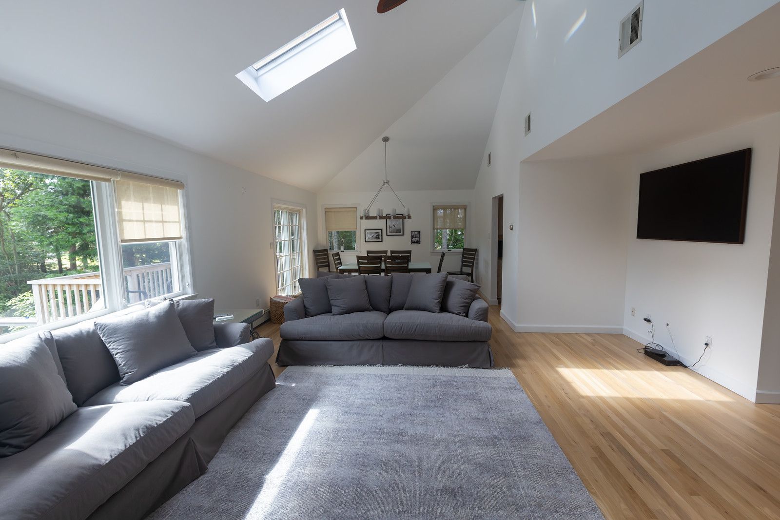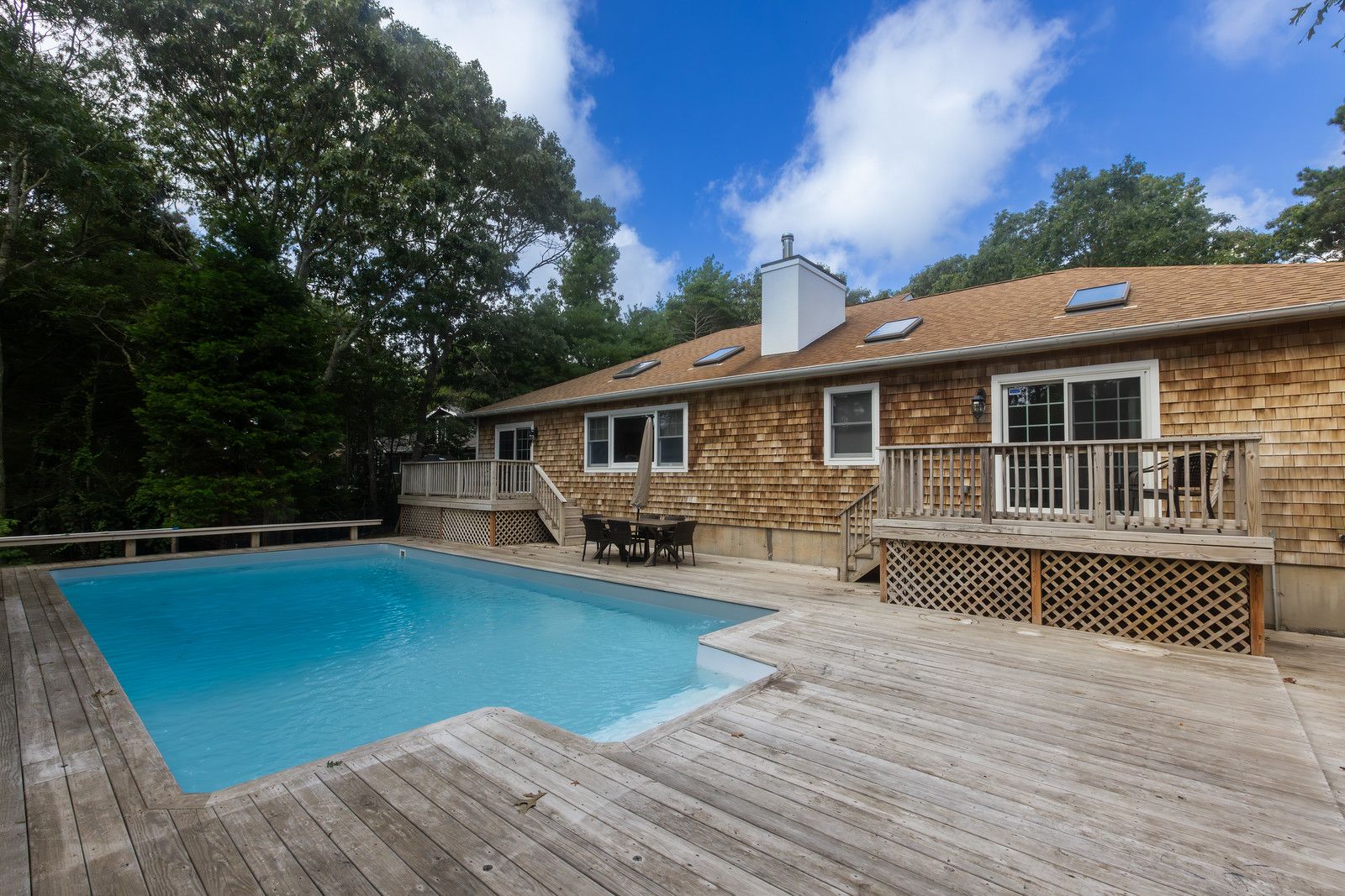 Rental Registration #: 16-2348 Conveniently located between East Hampton and Sag Harbor. Beautifully decorated and maintained three bedroom, two and a half bath, one story, post modern retreat. Bright, open living/dining room floor plan with fireplace. Large master bedroom with cathedral ceiling and outdoor deck. For additional entertaining, the dining room opens to an outdoor deck. Complete with pool and two-car garage..