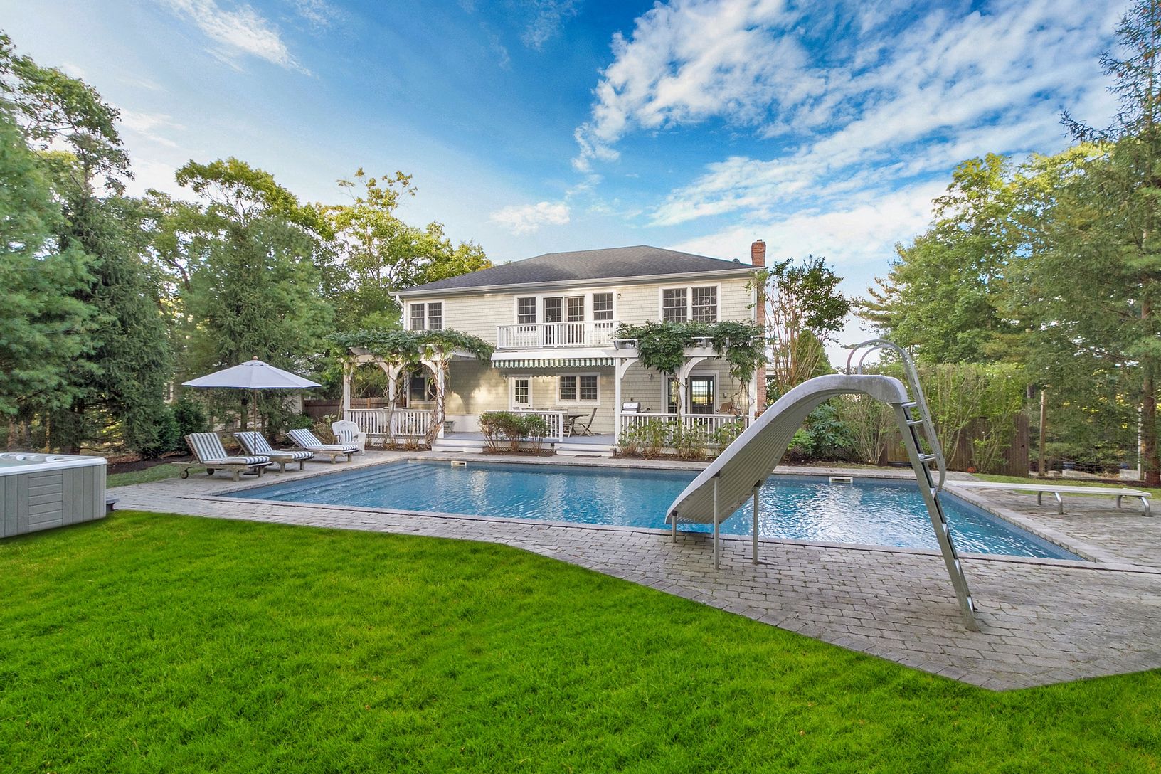 Rental Registration #: 17-242 What a stunner! This four bedroom, four bathroom home offers incredible water views overlooking the harbor, an amazing spot to watch the fireworks over Three Mile Harbor! This perfect summer home features extensive first & second floor porches and decking to enjoy the views, complete with hammocks, great deck furniture and a retractable awning for that special summer night. With a heated pool, Jacuzzi and outd