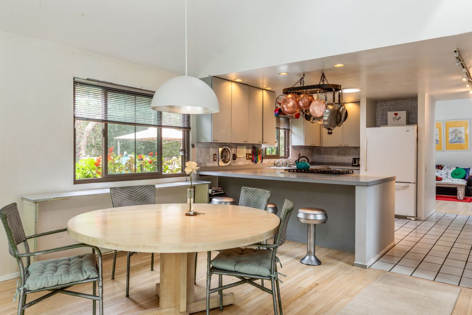 Rental Registration #: 16-409 Perfectly sited on over two very private acres, this five bedroom contemporary offers everything one might want for a perfect summer getaway. The open floor plan lends itself nicely to entertaining with soaring spaces inside and a tranquil poolside setting with plenty of decking and lawn. In addition there is a separate attached studio for those rollover guests who want their own space with its own living room, ba