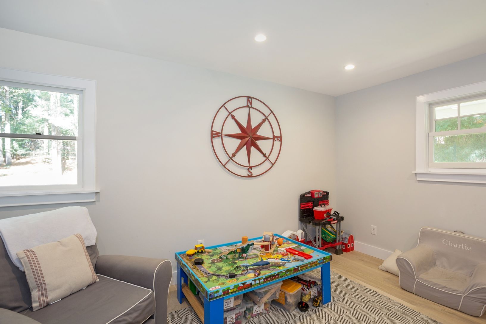 Tastefully appointed traditional home in East Hampton's nearby Northwest Woods, only a mile from Camp St. Regis' bay beach and just three miles to the village. Features include an open living room and dining space with sliding glass doors looking out to the lush backyard/pool, a large eat-in kitchen with breakfast bar and stainless steel appliances, a lovely en-suite master bedroom as well as two separate guest rooms and individual baths. Loca