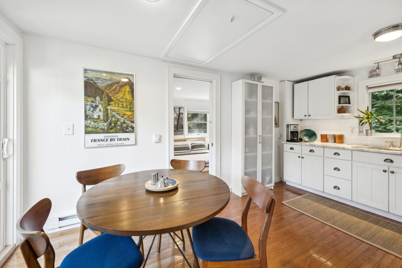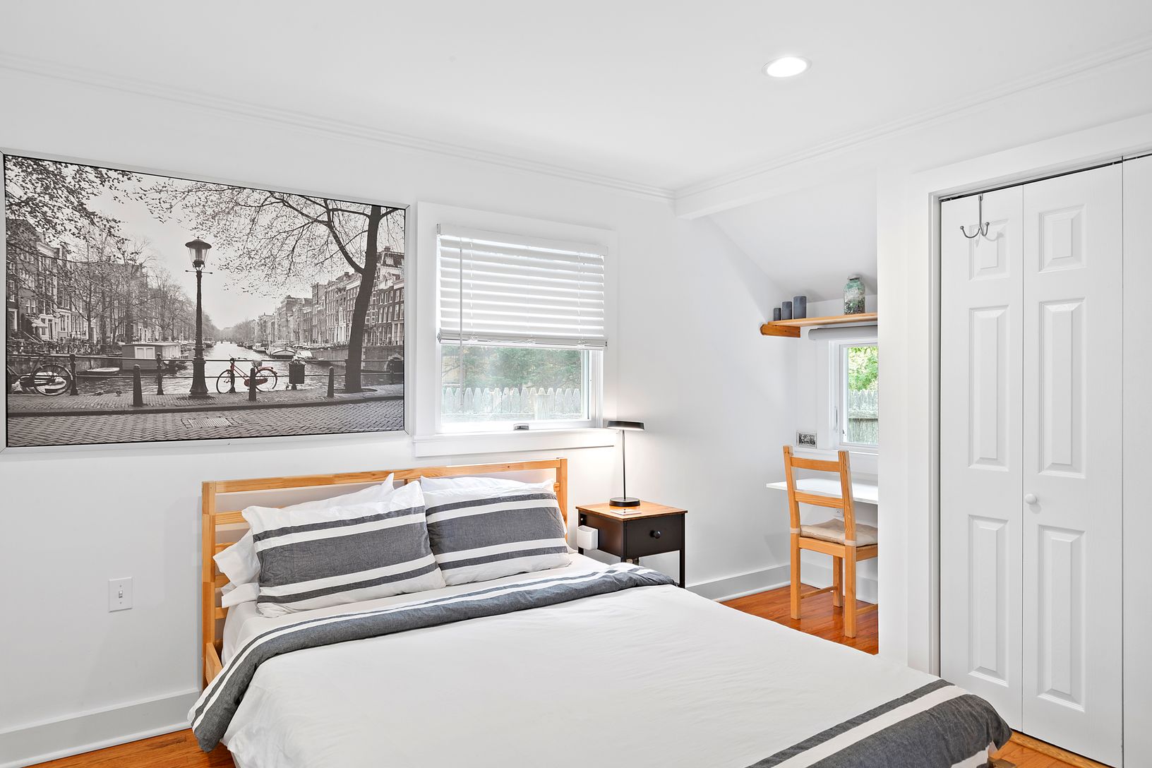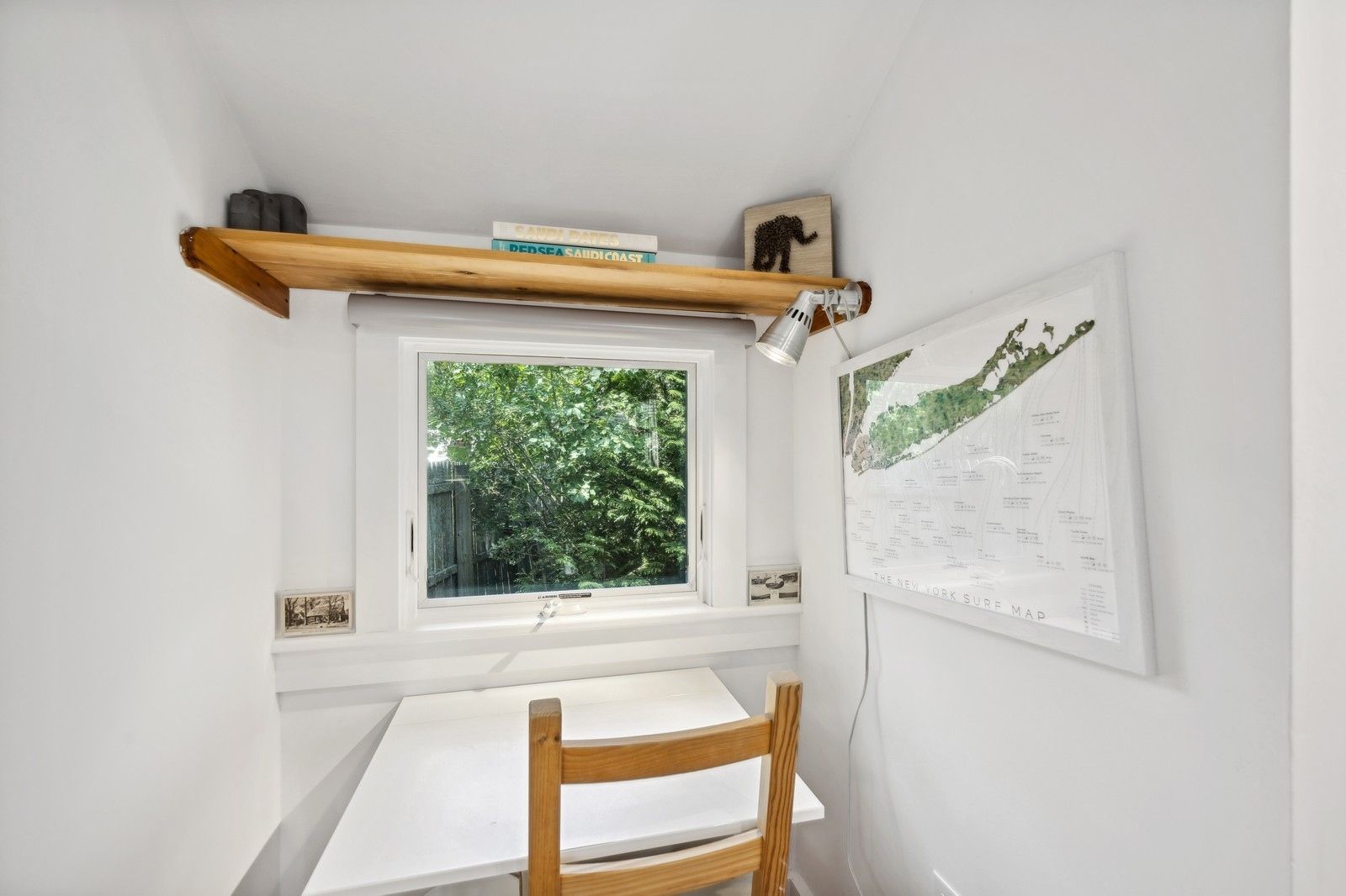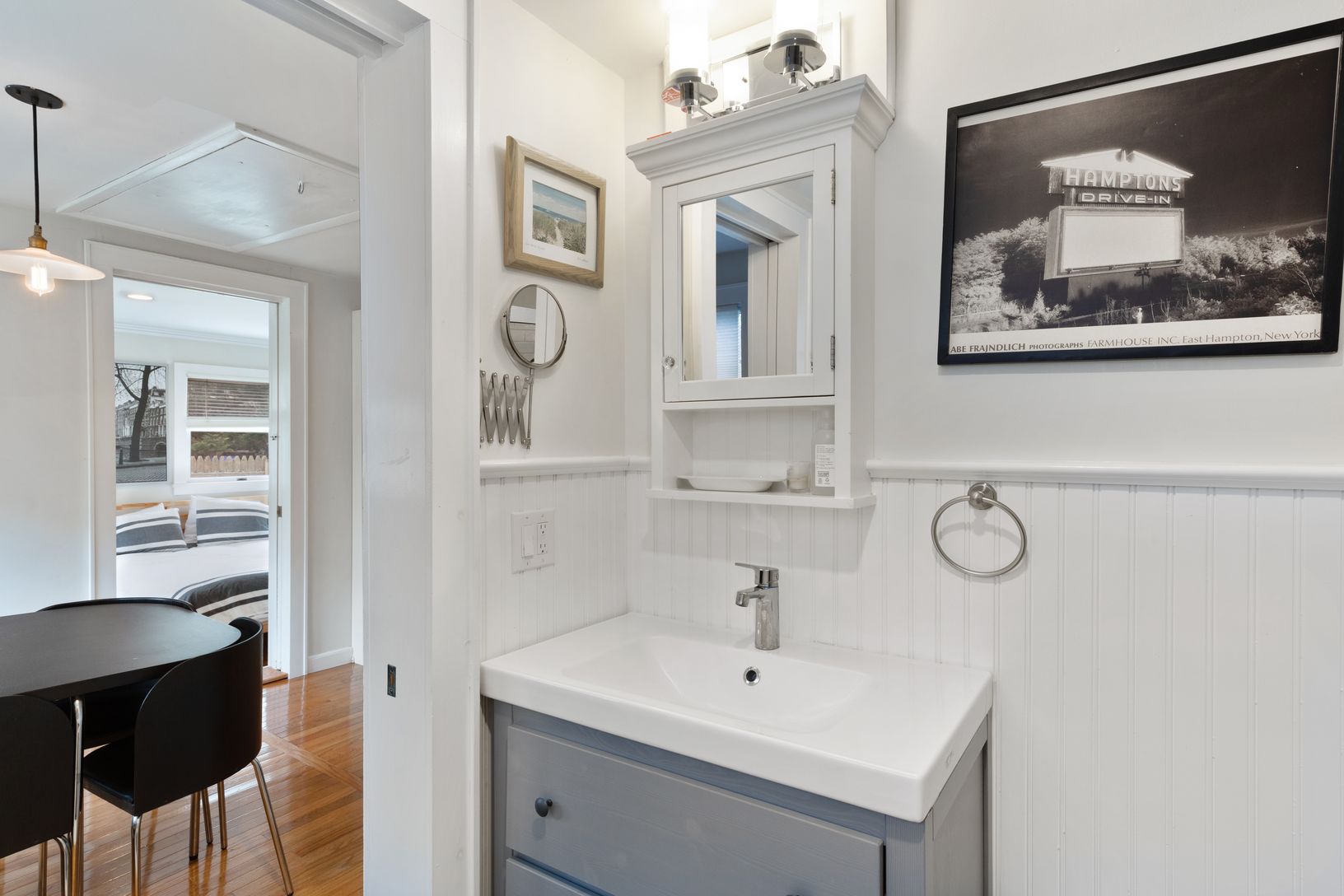 This renovated cottage on the fringe of the Village of East Hampton offers a comfortable and relaxing escape. This charming spot has two bedrooms with additional sleeping loft and living room with plenty of natural light from the skylights and bay window. The fully equipped kitchen has carrera marble counter tops and stainless-steel appliances. The front room also features a new ensuite secret bathroom. The outdoors offers a brick patio with o