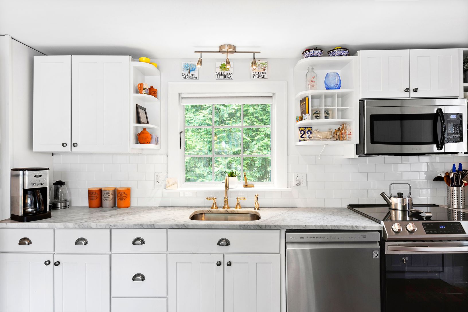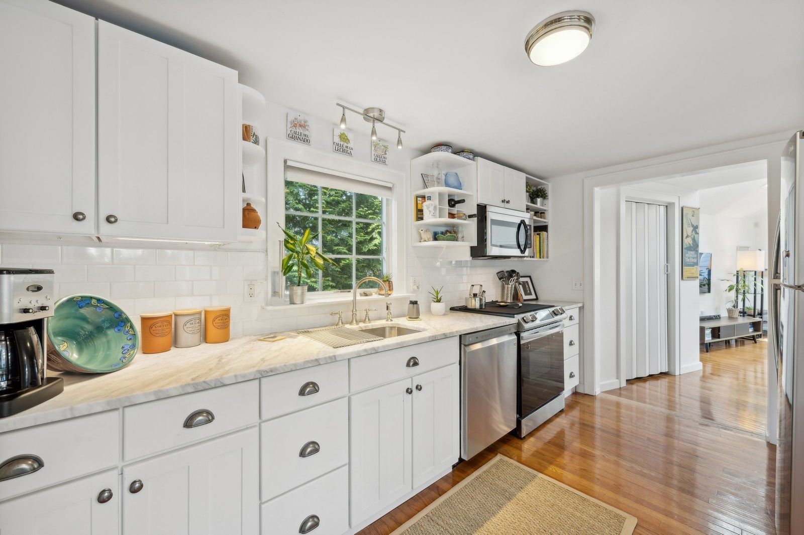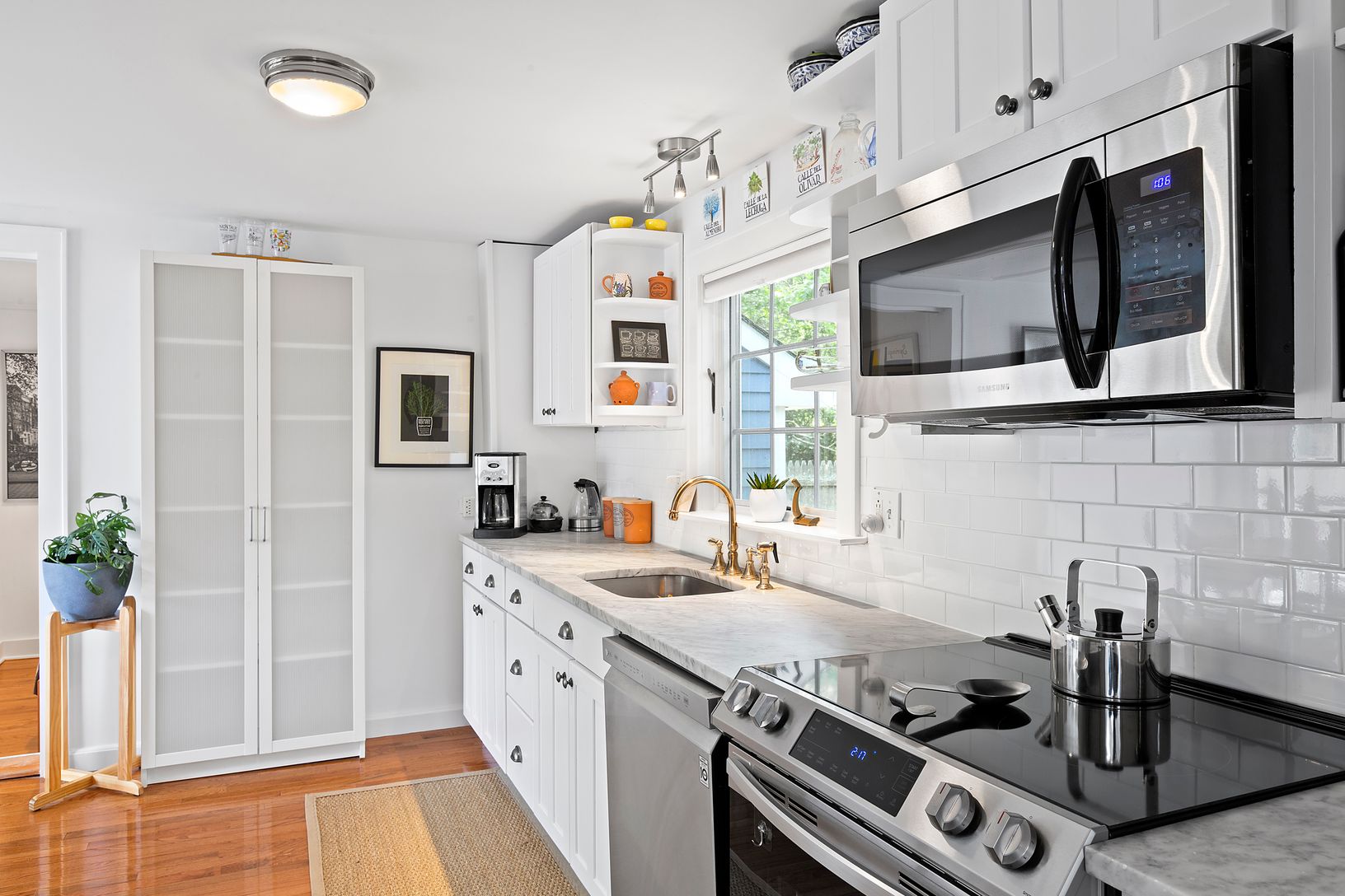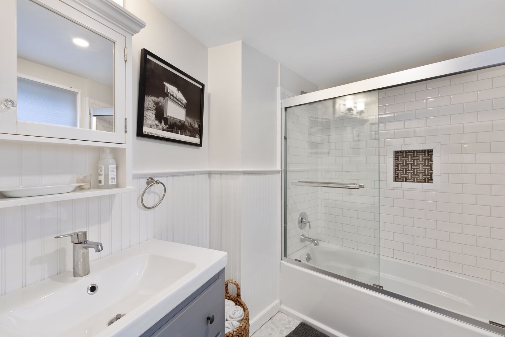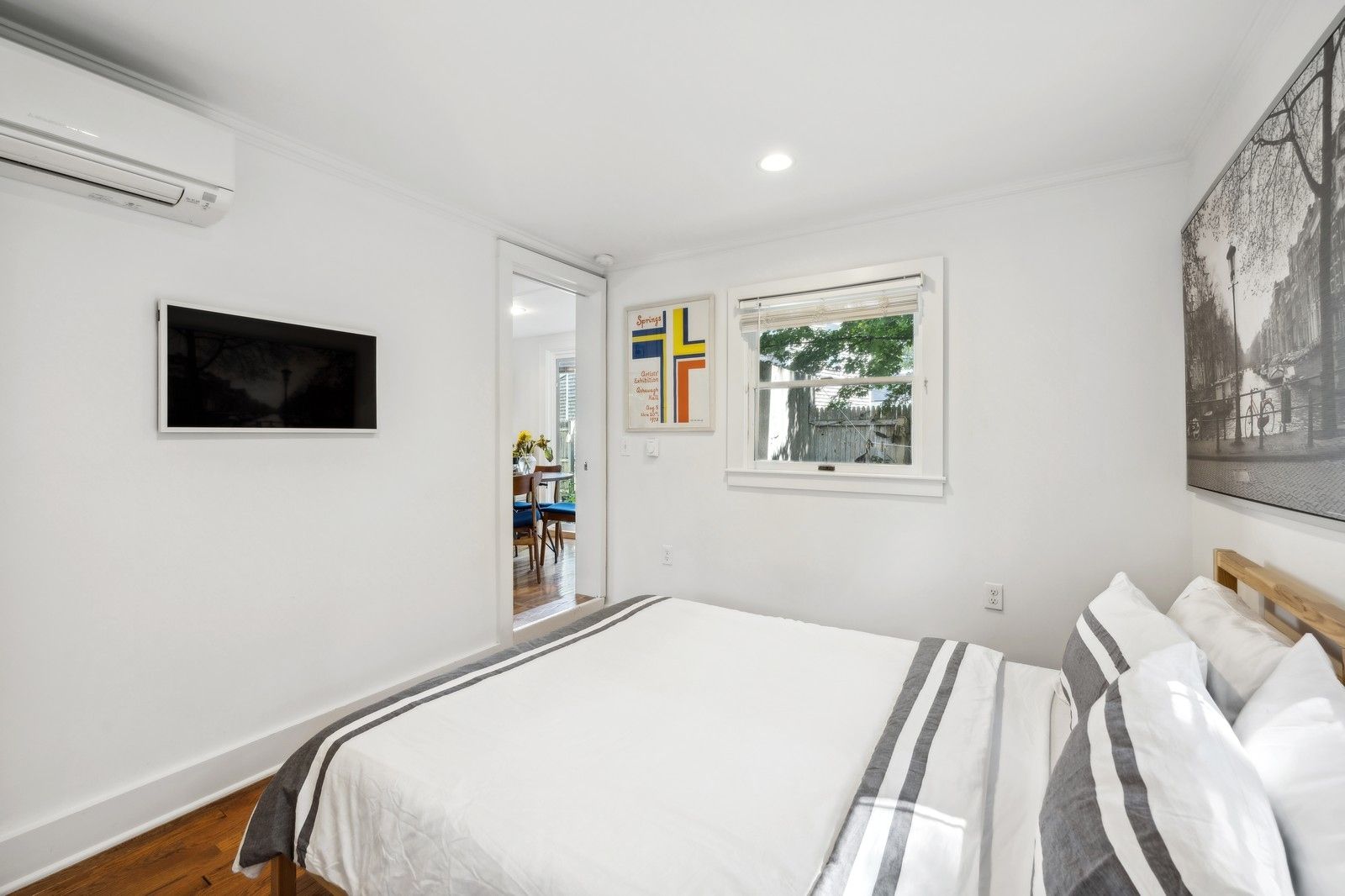 This renovated cottage on the fringe of the Village of East Hampton offers a comfortable and relaxing escape. This charming spot has two bedrooms with additional sleeping loft and living room with plenty of natural light from the skylights and bay window. The fully equipped kitchen has carrera marble counter tops and stainless-steel appliances. The front room also features a new ensuite secret bathroom. The outdoors offers a brick patio with o