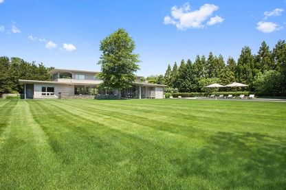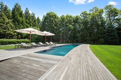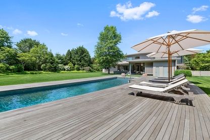 Rental Registration #: 16-962 Superb California Style Modern is a stunning combination of outstanding form and function. This architectural beauty is under a mile and just a few minutes to the ocean beaches of East Hampton Village and celebrated dining and shopping. Uniquely designed five bedroom, five and a half bath home features a main level Master Bedroom suite with dressing room, spa type bath, private study and access to pool and garden