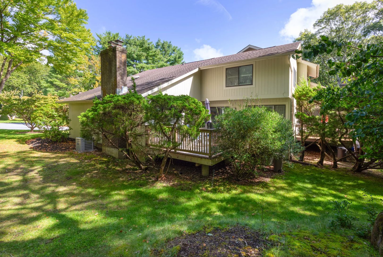 This newly renovated Condo has four bedrooms and three baths. The large living room has fireplace and opens to the dining area. Three tennis courts and a solar-heated pool are available for your enjoyment in the Treescape assocation. As an end unit, the deck enjoys great privacy. Have a carefree summer vacation!
