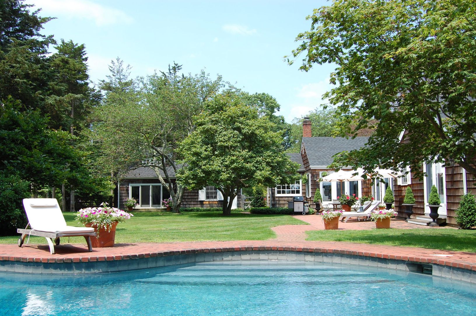 Rental Registration #: 16-1730 This charming traditional home is located South of the Highway in East Hampton and just around the corner from Further Lane and East Hampton's most beautiful ocean beaches! Chic living with three generous bedrooms, wonderful bright open living room, spacious kitchen, all with French doors opening to terraces. There is a lovely heated gunite pool, as well as a charming studio overlooking the manicured grounds. Tru