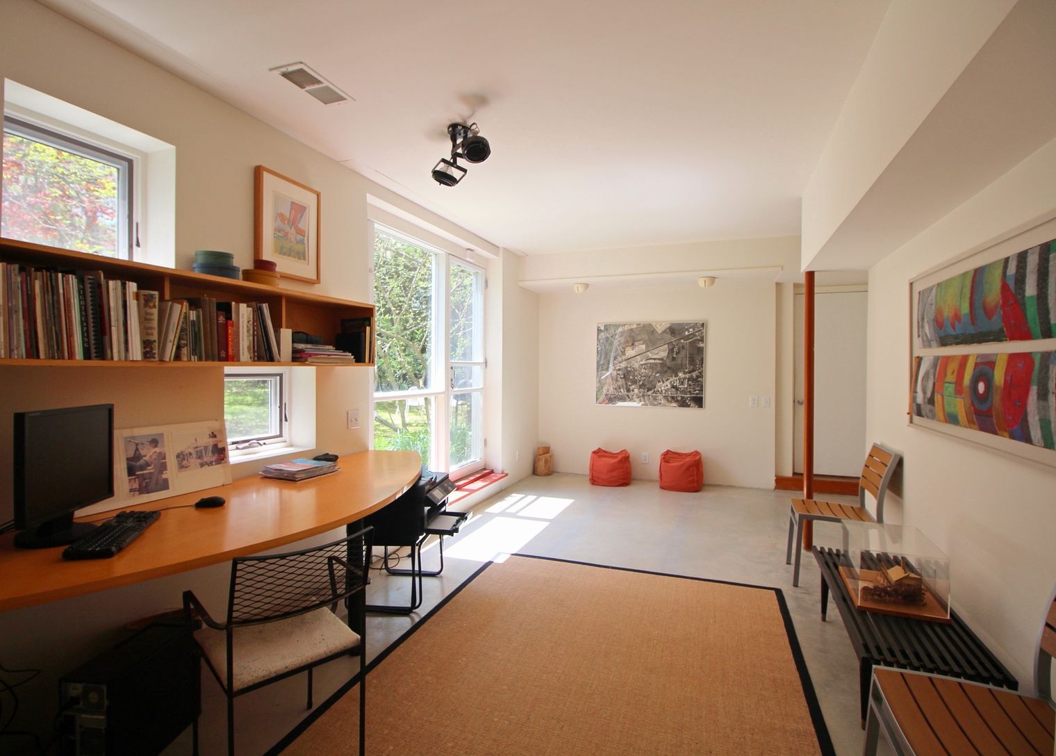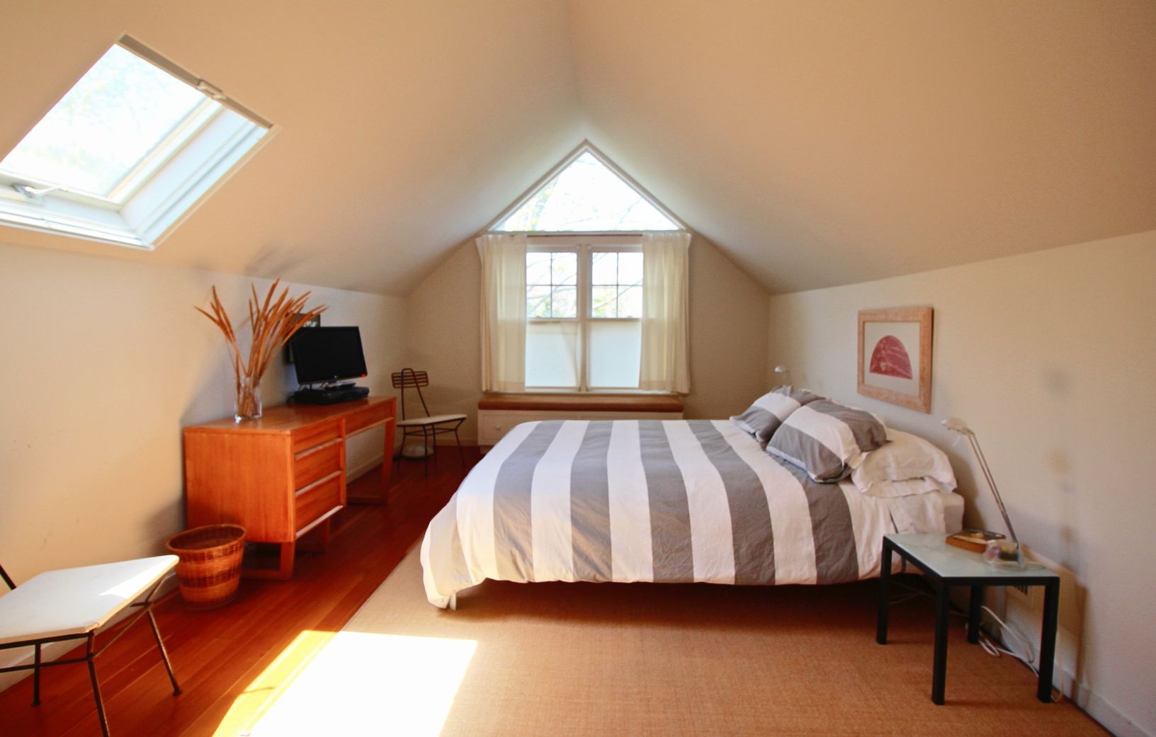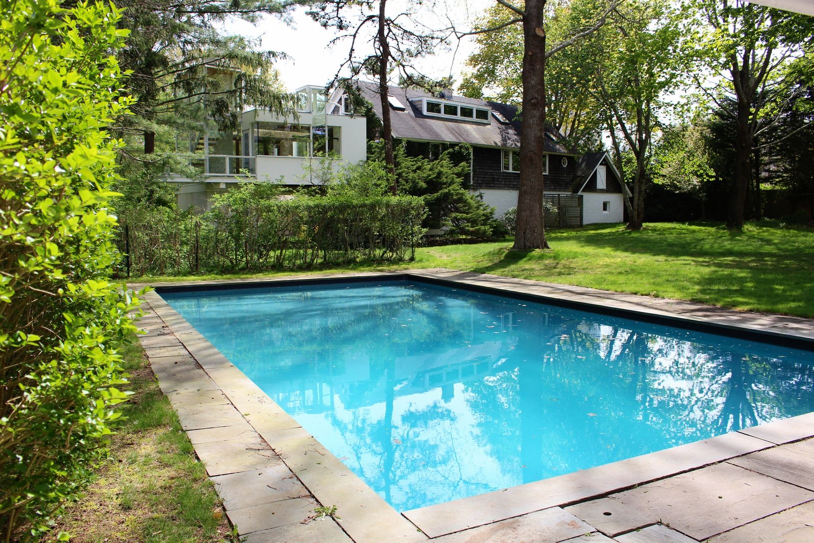 Rental Registration #: 16-25 Architect owned stunning modern home on 1.1 acre flag lot private flag lot. The main house has 3 beds and 2.5 baths and has been created to ensure views of the grounds from the many multi-level common spaces including den, office and library. The heated, full-size pool is private and surrounded by lawns and a pool house with shower. There is a separate cottage with sleeping loft, living room, kitchen and bath att