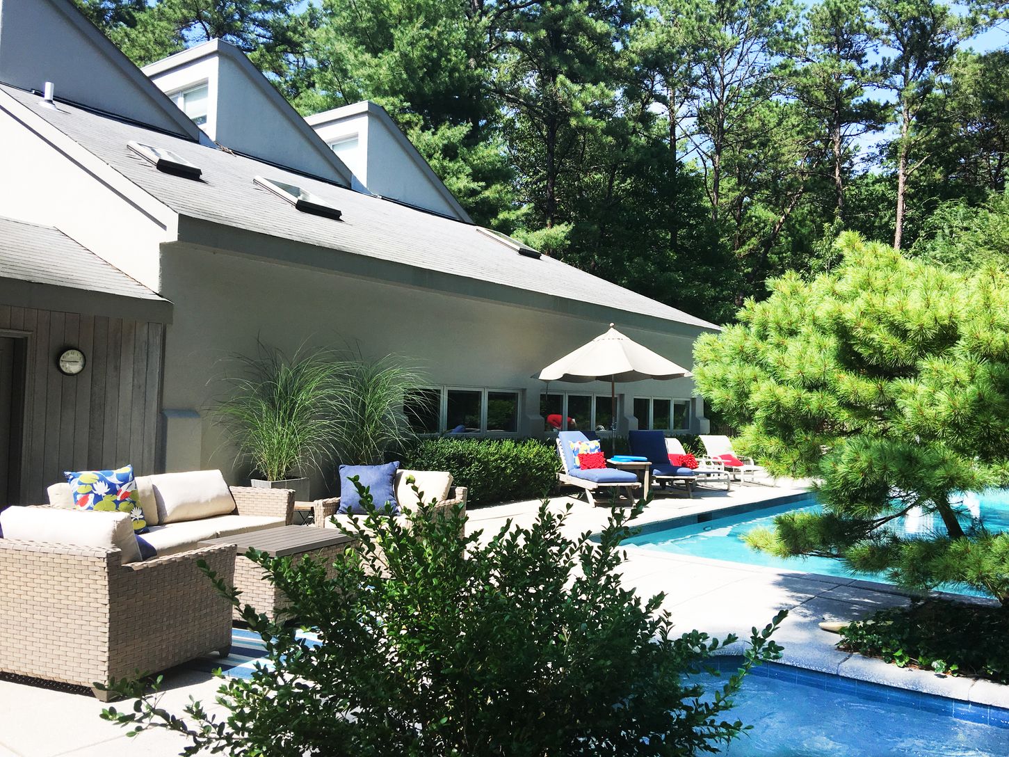 Rental Registration #: 17-55 Available for any two-weeks this summer. Amazing architect designed four bedroom, 3.5 bath contemporary with heated gunite pool in a lovely, professionally landscaped private setting. Two-sided fireplace anchors the serene living and dining rooms, which lead to a perfect renovated eat-in kitchen with seating area. Bluestone patios surround the 45' heated gunite pool, spa with waterfalls and outdoor dining area. Ups