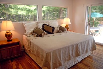 Rental Registration #: 18-1,459 Crisp renovation of this three bedroom, two bathroom contemporary has wonderful architectural details and close proximity to Town. All on one level there is a master to one side of the house and two guest rooms and a bathroom on the other side. The kitchen has been completely redone and is adjacent to the open living dining area with fireplace. Outside is a large deck, hot tub, and heated pool. Updated for 2020.