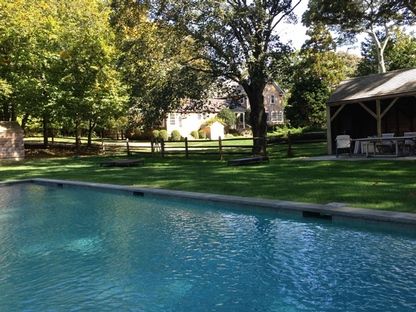 Rental Registration #: 18-219. This restored 1900c 5 bedroom/4 bath farmhouse sits on 3.5 spectacular open acres less than 5 minutes from East Hampton Village and its fabulous shops and beaches. All the rooms including the lovely first floor master-suite, cook's kitchen, and sunny living room, maintain the details of the original farmhouse and are finished with vintage antiques. The pool pavilion that over looks the 45' gunite pool and meadow,