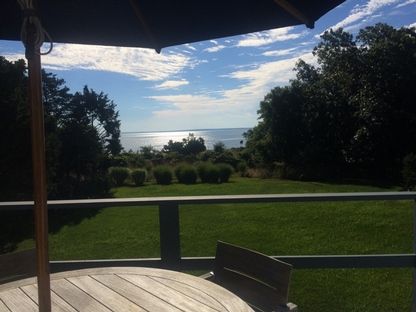 Rental Registration #: 18-875. The BEST views, BEST big rambling house, BEST brand new pool. Short distance to beach or hang out at the waterside pool. Enjoy this waterfront home with a new 350 square foot deck overlooking Gardiner's Bay. The home offers 2,900 square feet of living space with large kitchen, dining room, living room with fireplace, sitting room, 4 bedrooms and 3 baths. Set on 1 acre with pool and beautiful gardens; the perfect