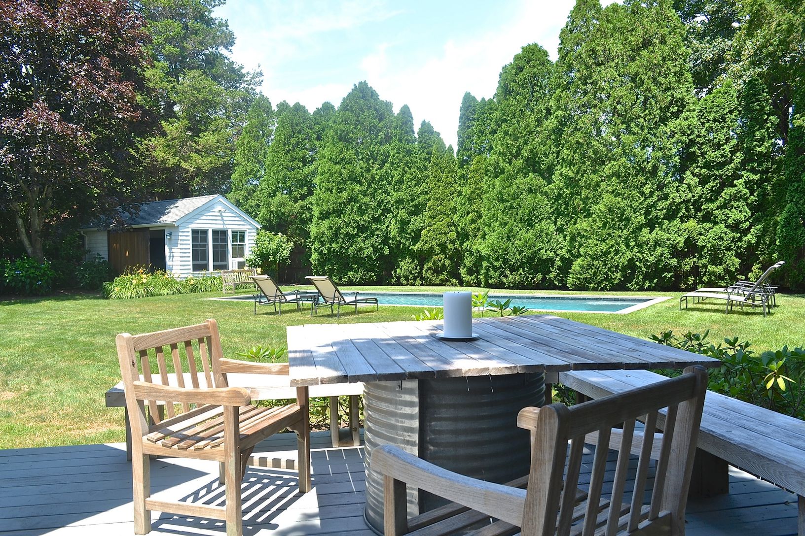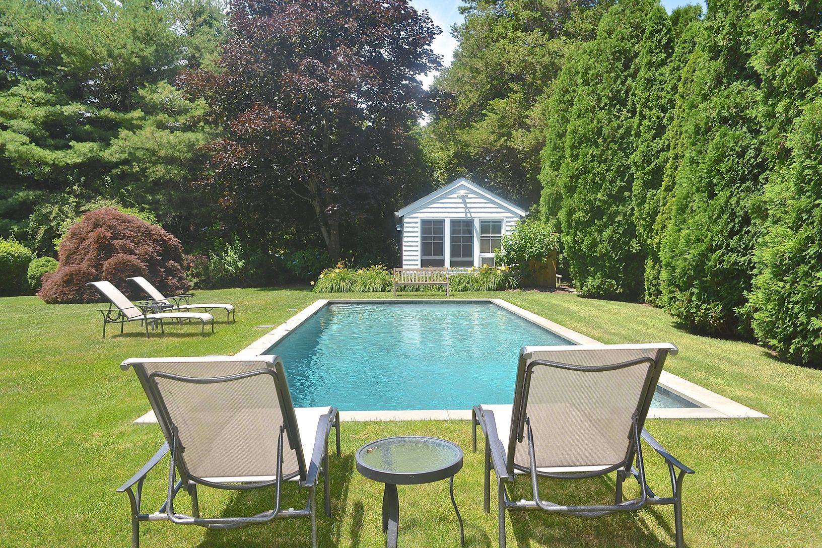 Perfectly hidden and private, this adorable 1200+ sq ft cottage is the ideal spot for your summer get away. The living room, dining room and kitchen are all open and continuous, making for a very airy feel. There are three bedrooms and two full baths. The kitchen french doors open onto a pergola covered deck, and beatifically landscaped yard with gunite pool, pool house with 1/2 bath and an outdoor shower. Located in East Hampton Village, clo