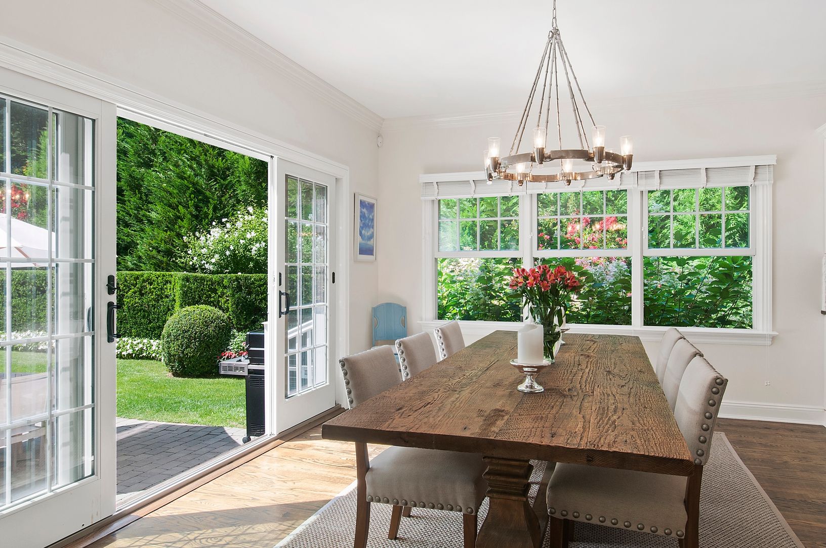 Rental Registration #: 18-2426 Well appointed, shingle-style Hamptons estate in a gorgeous natural setting features 4 bedrooms and 3 1/2 baths with elegant furnishings. The open floor plan includes living room with fireplace, dining area, and chefs kitchen, making for easy and elegant entertaining options.The peaceful indoor/ outdoor spaces lead gracefully to a large terrace and heated pool. Custom sound system indoors and out, a lovely wrap-a