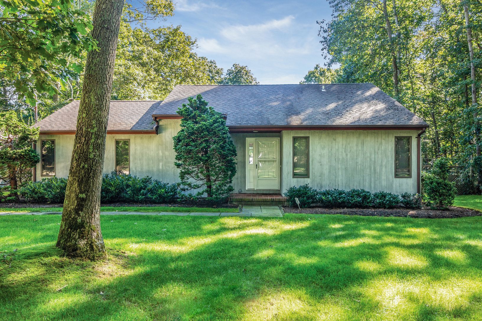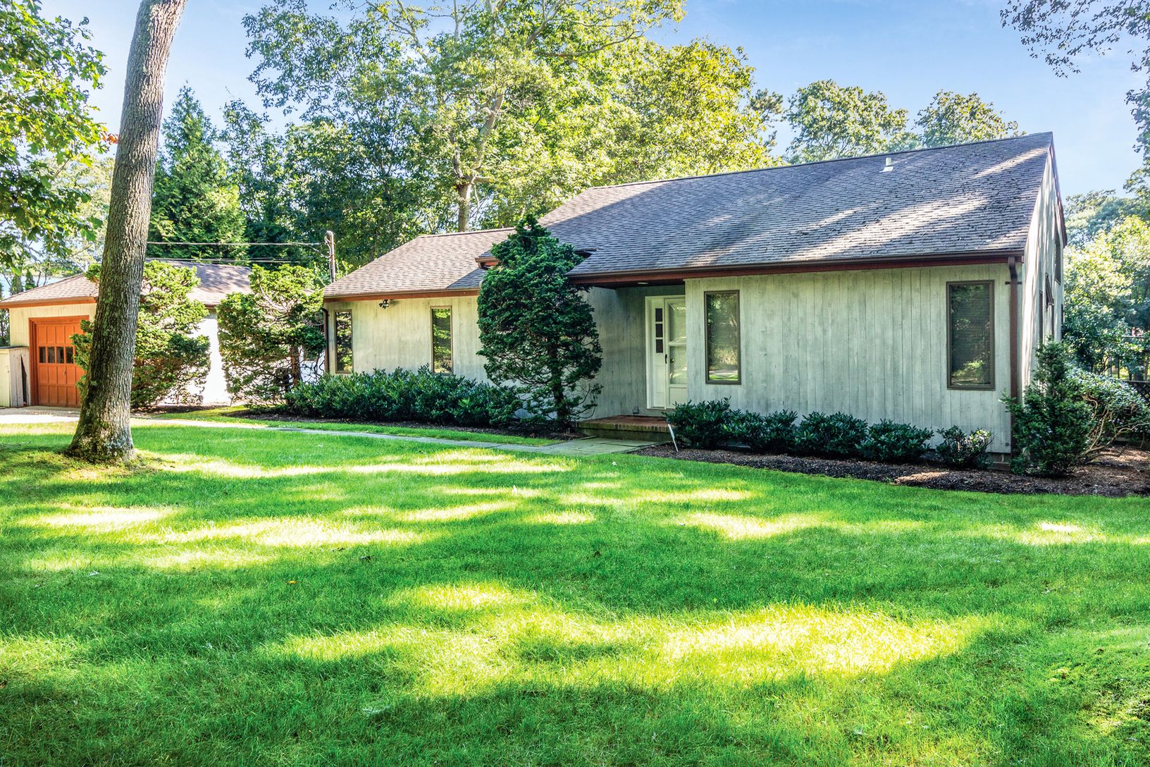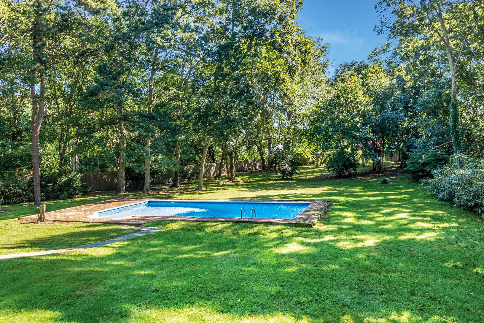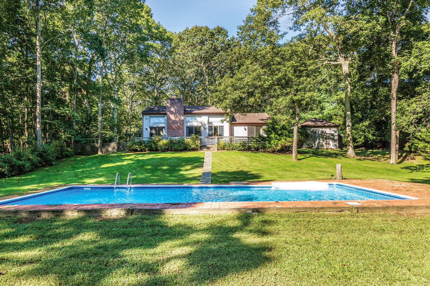 Located on a private road conveniently located to East Hampton Village shops and beaches. This one-story, three bedroom, two bath sanctuary provides all the comforts of home on an expansive piece of property complete with a bright living and entertaining area, fireplace, 20' x 40' pool, brick patio, back deck, garage and an outdoor shower.