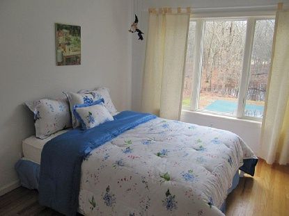Rental Registration #: 18-1072 This spacious, light filled four bedroom, three bath Traditional on a quiet 2.1 +/- acre flag lot off Old Stone Highway, near the Springs General Store, Accabonac Harbor and Gardiners Bay, offers an open floor plan for easy living and entertaining. Features include an open kitchen and dining area, living room with cathedral ceilings and a wood-burning fireplace, separate den, hardwood floors throughout, central a