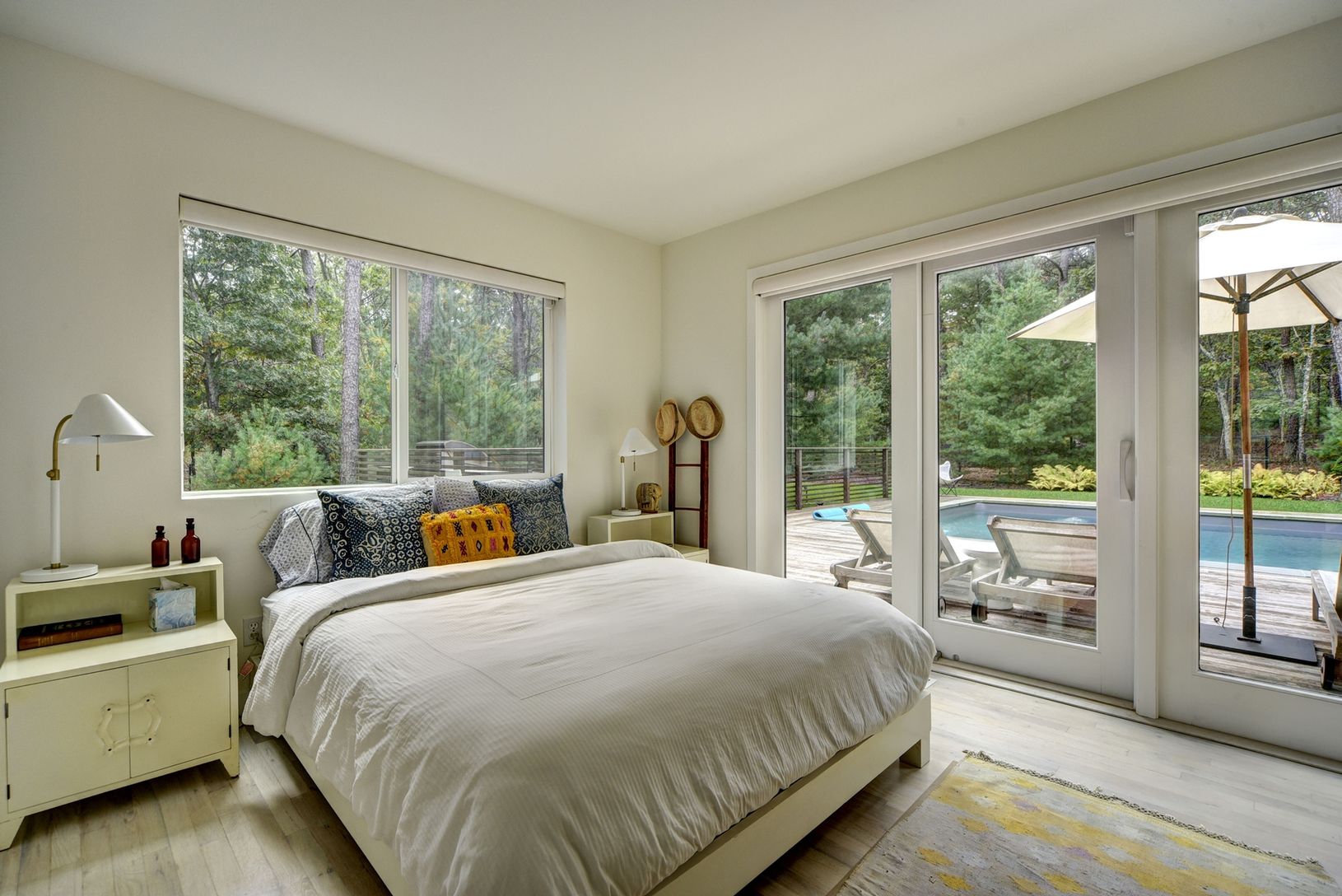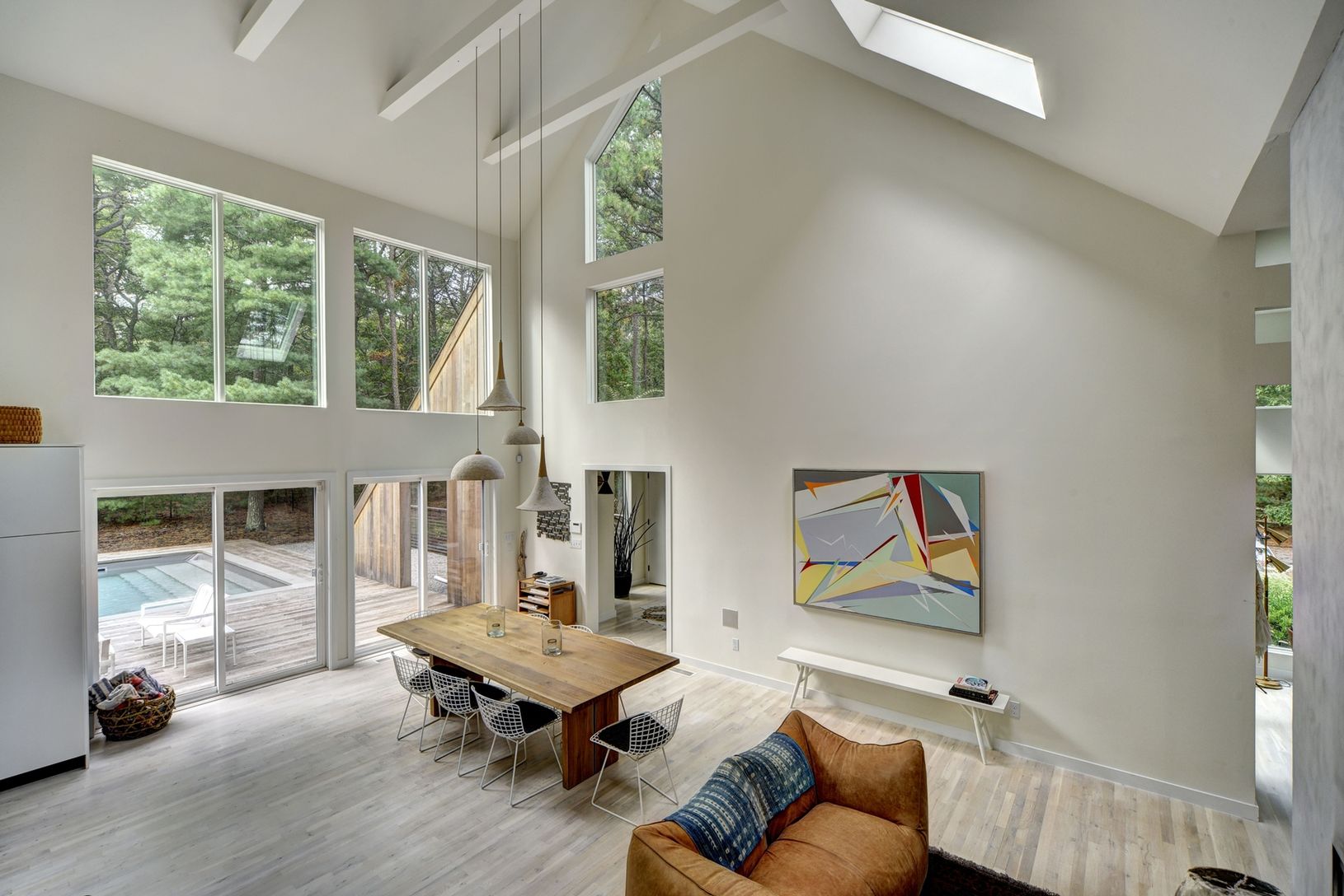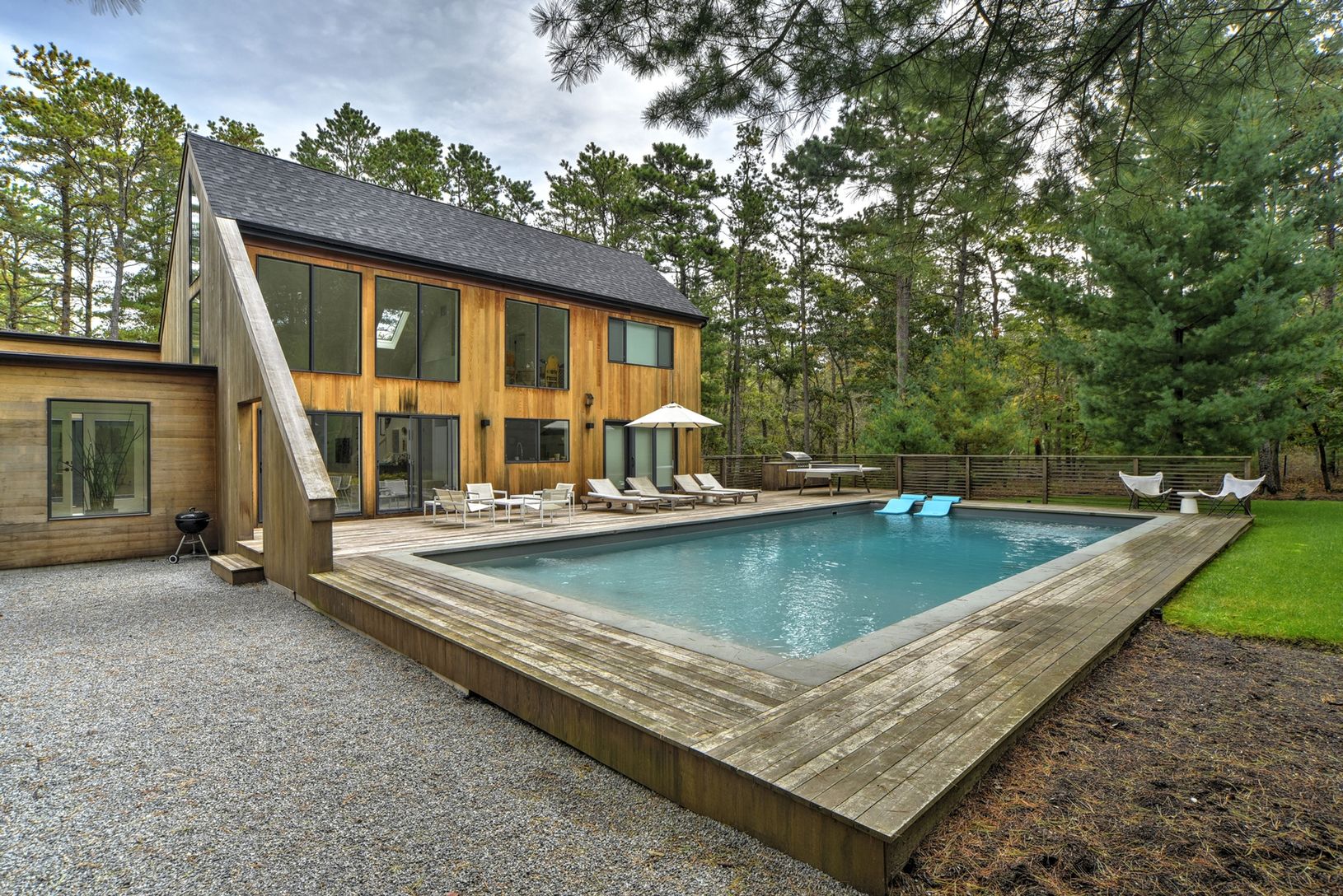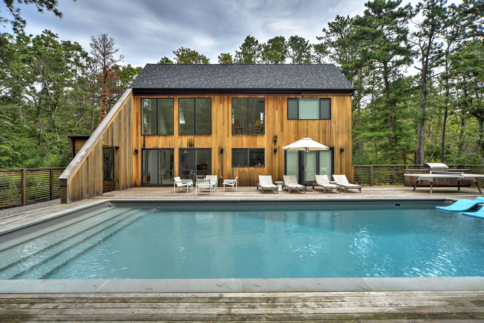 Rental Registration #: 17-544 Located down a tree lined street awaits this gorgeous rental property for the summer season or year round. This home has a heated pool, expansive decking for entertaining or dining al fresco, lush landscaping, and large windows which allow natural light to pour into the living space. The interior begins with a foyer that opens to the double height ceilings in the living room and dining area. The large fireplace is
