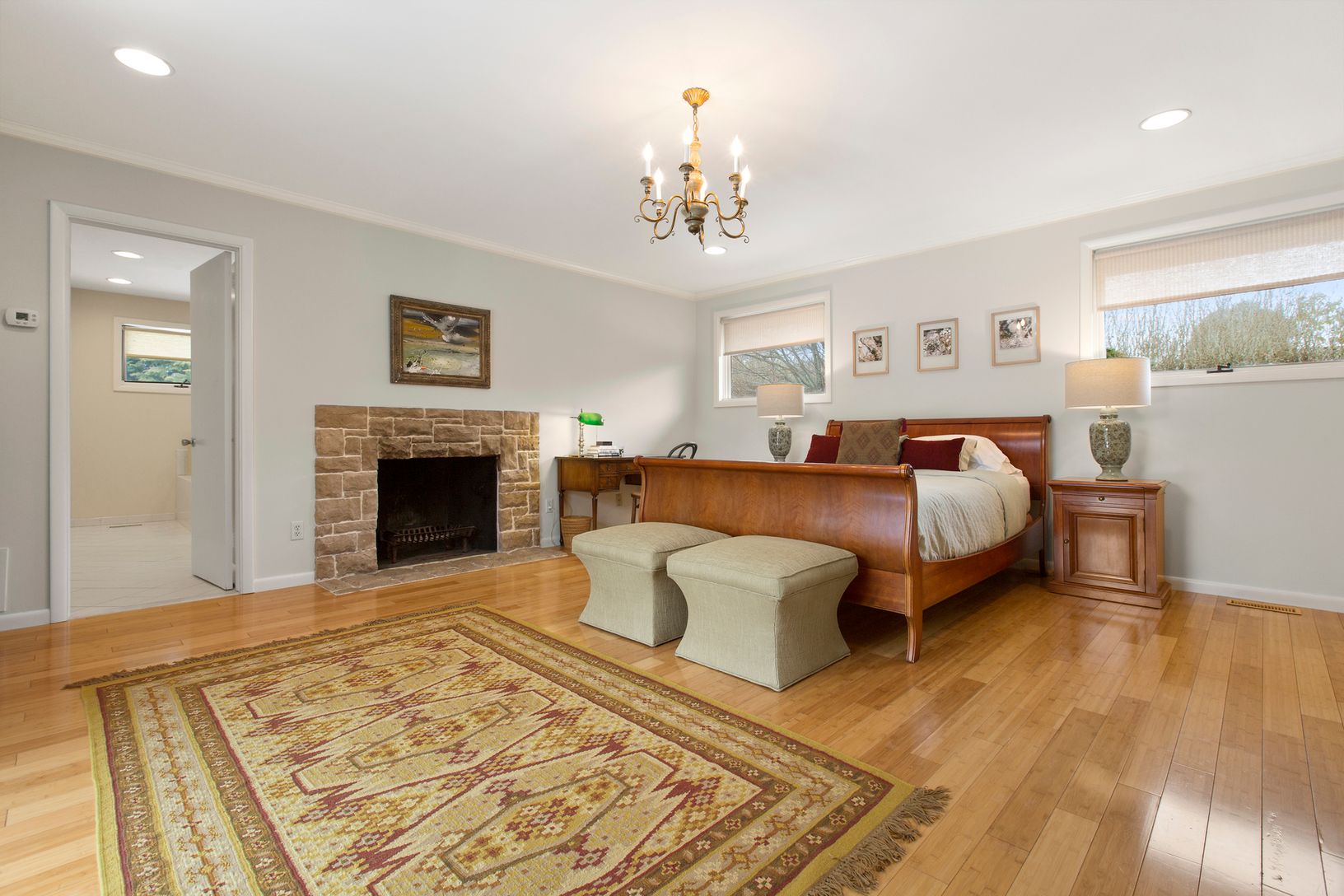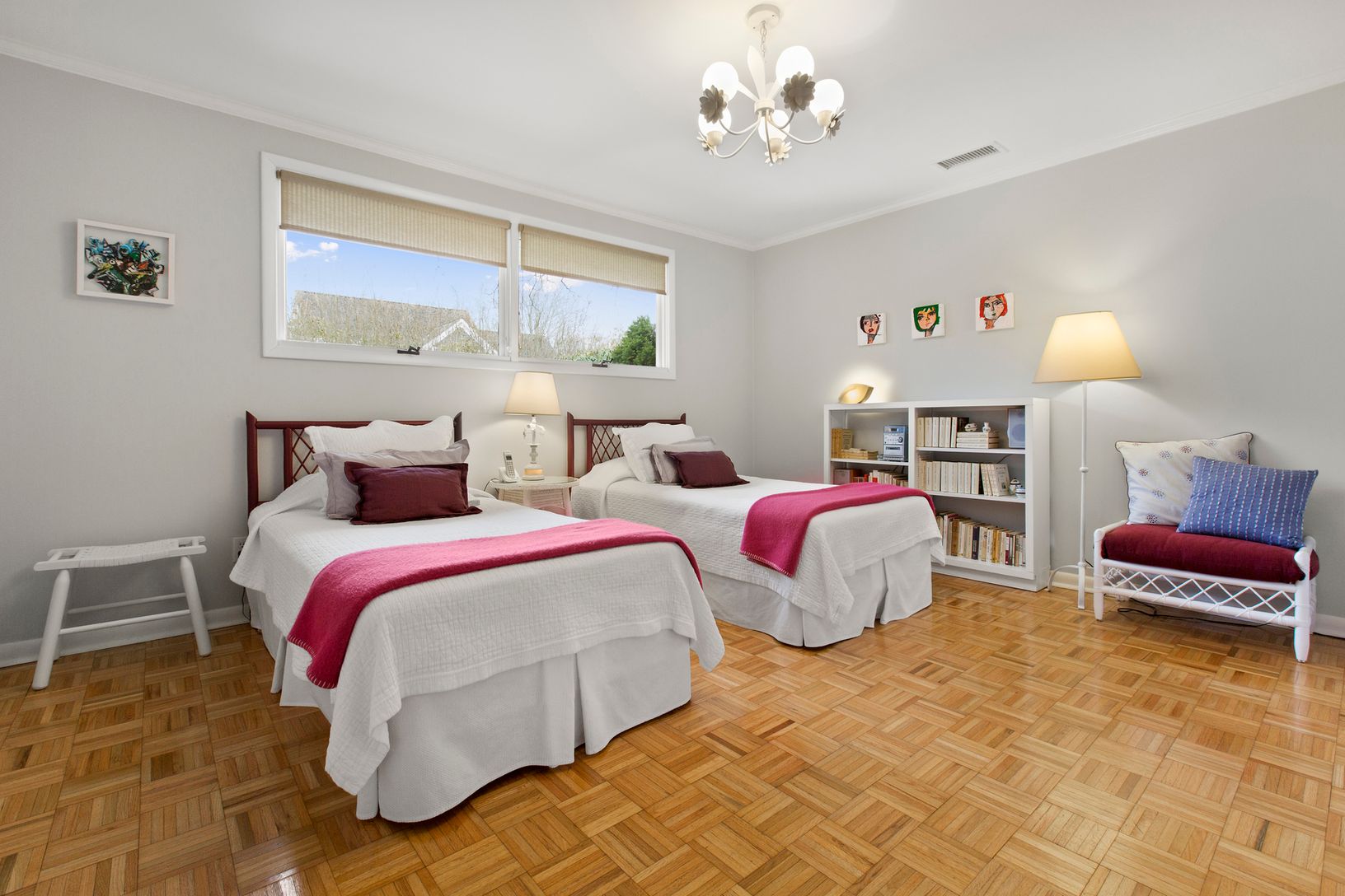 This spacious 3 bedroom, 4 bath, one story home is located on a lovely lane South of the Highway in the Village of East Hampton. Conveniently located in close proximity to beaches, town and Jitney, it is a terrific summer home away from home. The serene master suite with fireplace is located on the far end of the house and looks out to the deck and grassy lawn. Two guest rooms, large family room, quiet study off the kitchen and open living roo