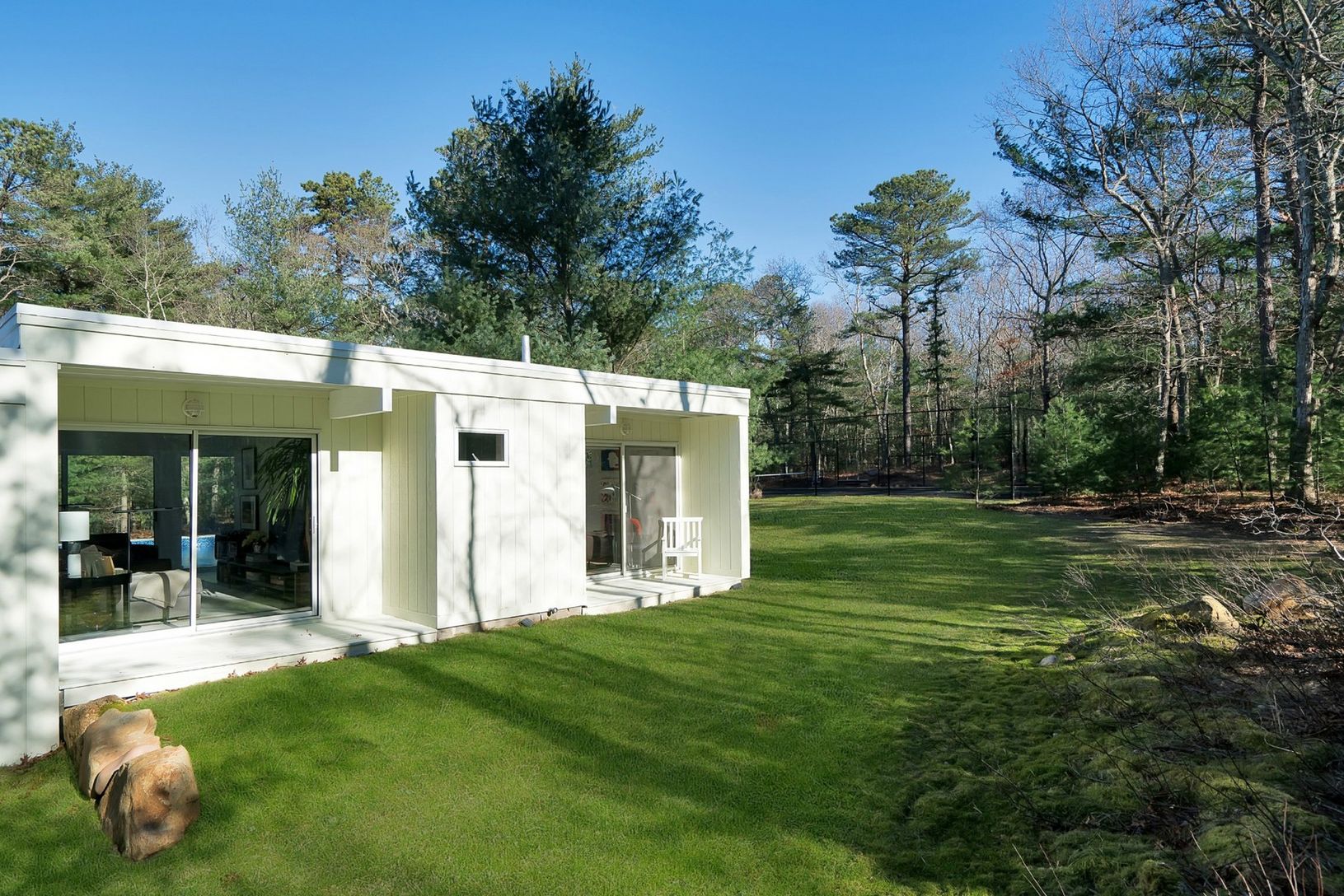 Rental Registration #: 18-856 Recently refreshed to perfection, this stylish and sexy one level Modern home with tennis court offers easy access to both East Hampton and Sag Harbor Villages. Light, bright and cheery, the 2,500 square foot residence features an open floor plan with walls of glass throughout. The 4 bedrooms all have access to the outdoors, and the master suite opens to its own deck with immediate access to the pool area as well.