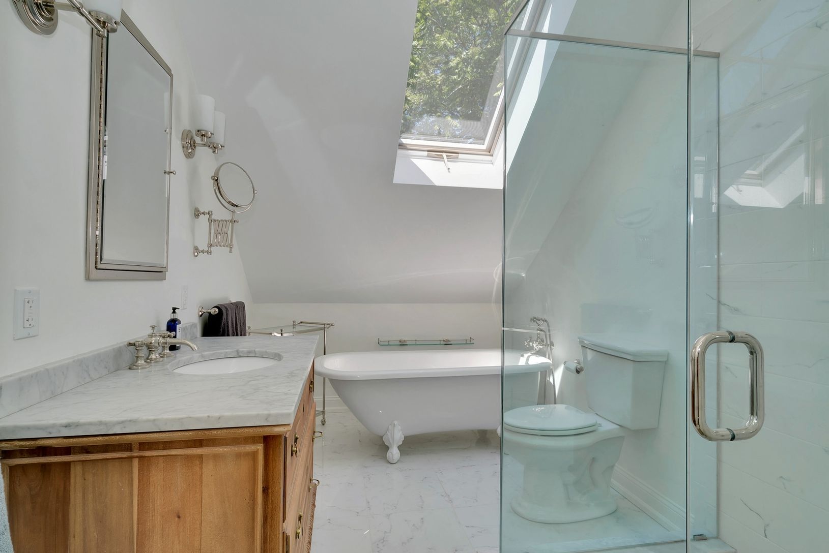 Renovated to perfection, this light-filled home is located on one of the most coveted streets in the Village of East Hampton. Features include an open floor plan with brand new chef's kitchen including top of the line appliances, dining area and great room with vaulted ceilings and wood burning fireplace. In addition, two en-suite guest bedrooms plus a powder room complete the first floor. The second level boasts a gracious master suite wit