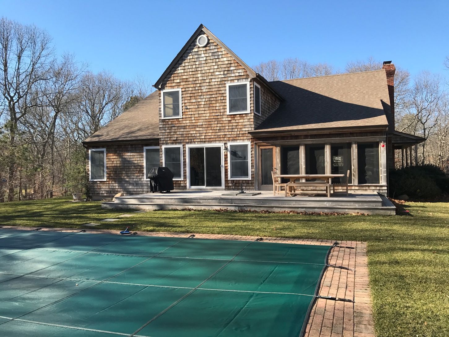 Rental Registration #: 18-280 Well maintained four bedroom, four bath home on 1.5+/- acres located close to East Hampton Village restaurants, shops and beaches. The first floor includes spacious living room with fireplace, dining area, eat-in kitchen, two bedrooms and baths including the master. There are two additional guest rooms on the second floor, each with en-suite baths. There is a 40' pool, deck and screened porch as well as a detached