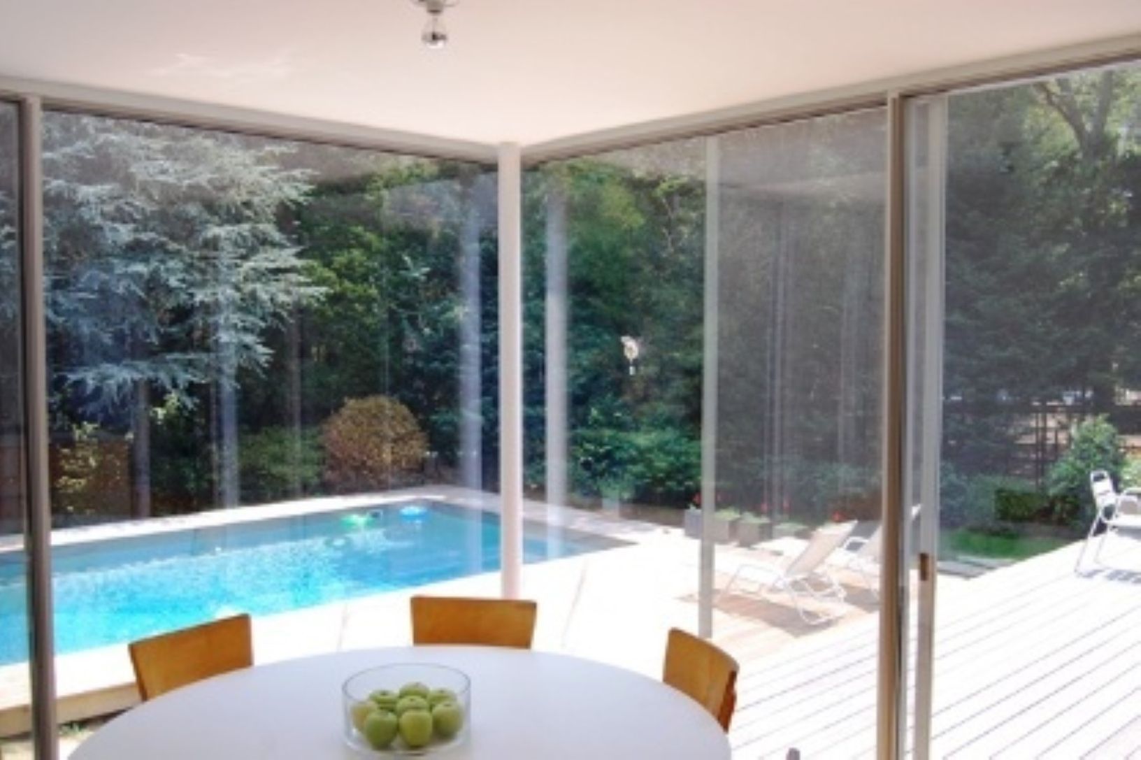 Designed by acclaimed Fernlund & Logan architects this 4 bedroom 3 bath one of a kind modern minimalist home is just 3 blocks to the bay and 5 minutes to the village of East Hampton. Relax in this all, glass and cedar jewelbox surrounded by towering trees in an extremely private setting. Light-filled, each room has an entire wall of glass. This "DWELL" like home includes central air, a large heated pool and deck, outdoor shower and a cl