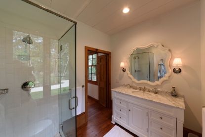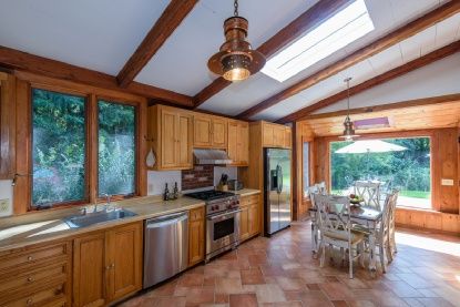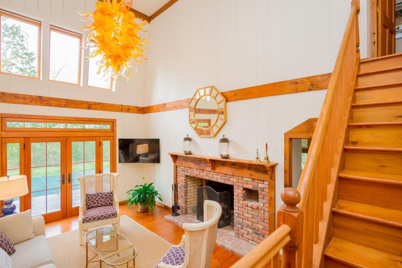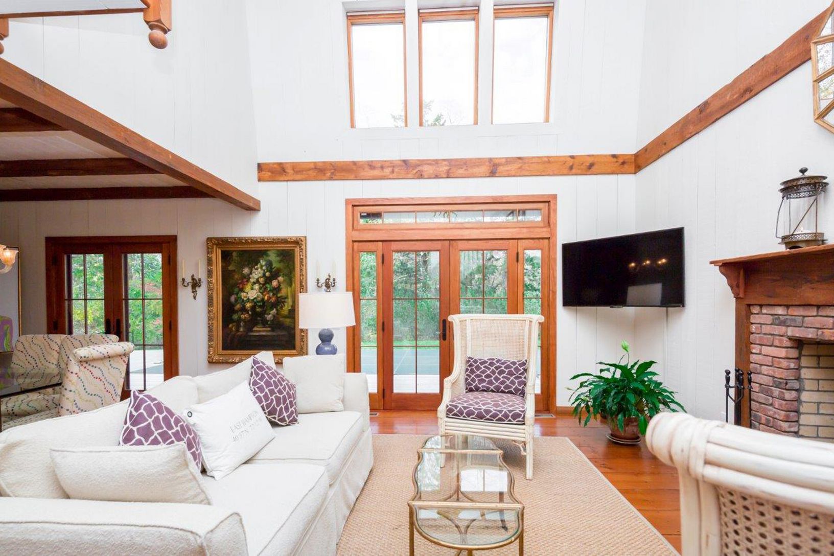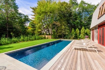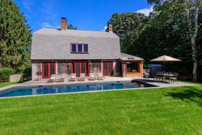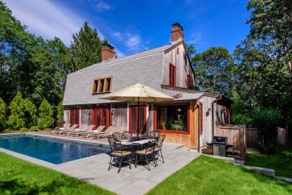 Rental Registration #: 16-1424 Offering the ultimate in privacy as well as convenient access to all major beaches, this lovely two-story home is situated on a beautifully landscaped acre, just north of Hwy 27 and conveniently located mid-way between Amagansett and East Hampton. With a double height ceiling, the Living Room leads out onto the Pool deck through custom French doors which offers the ideal area to entertain and relax. There is a 5
