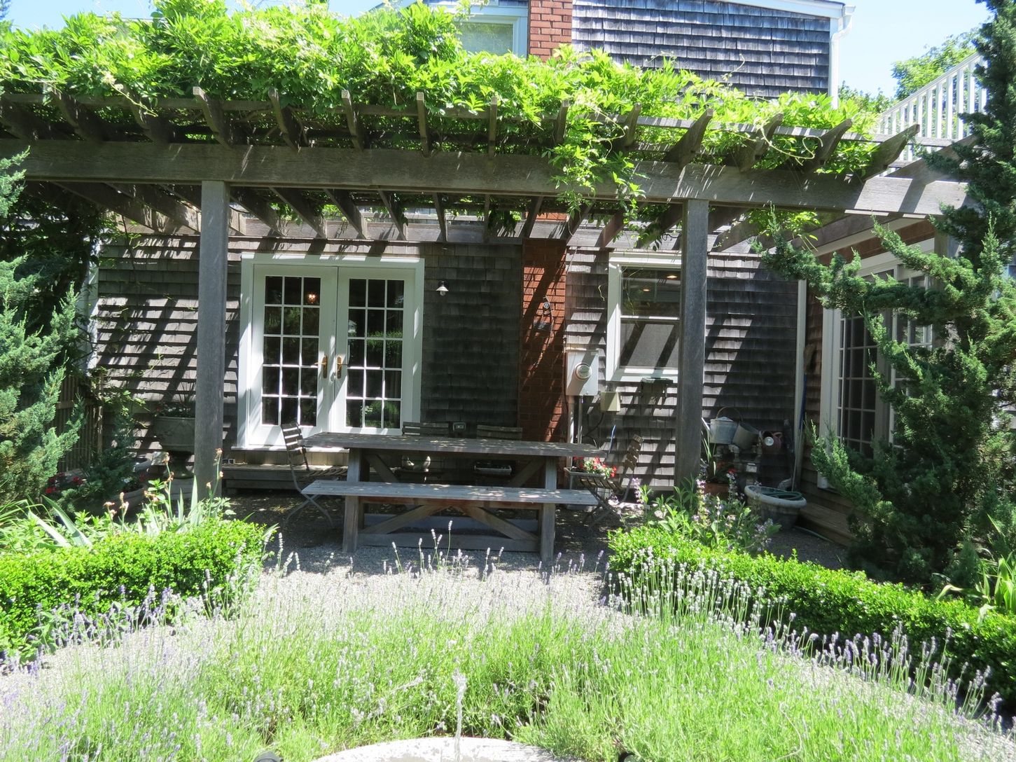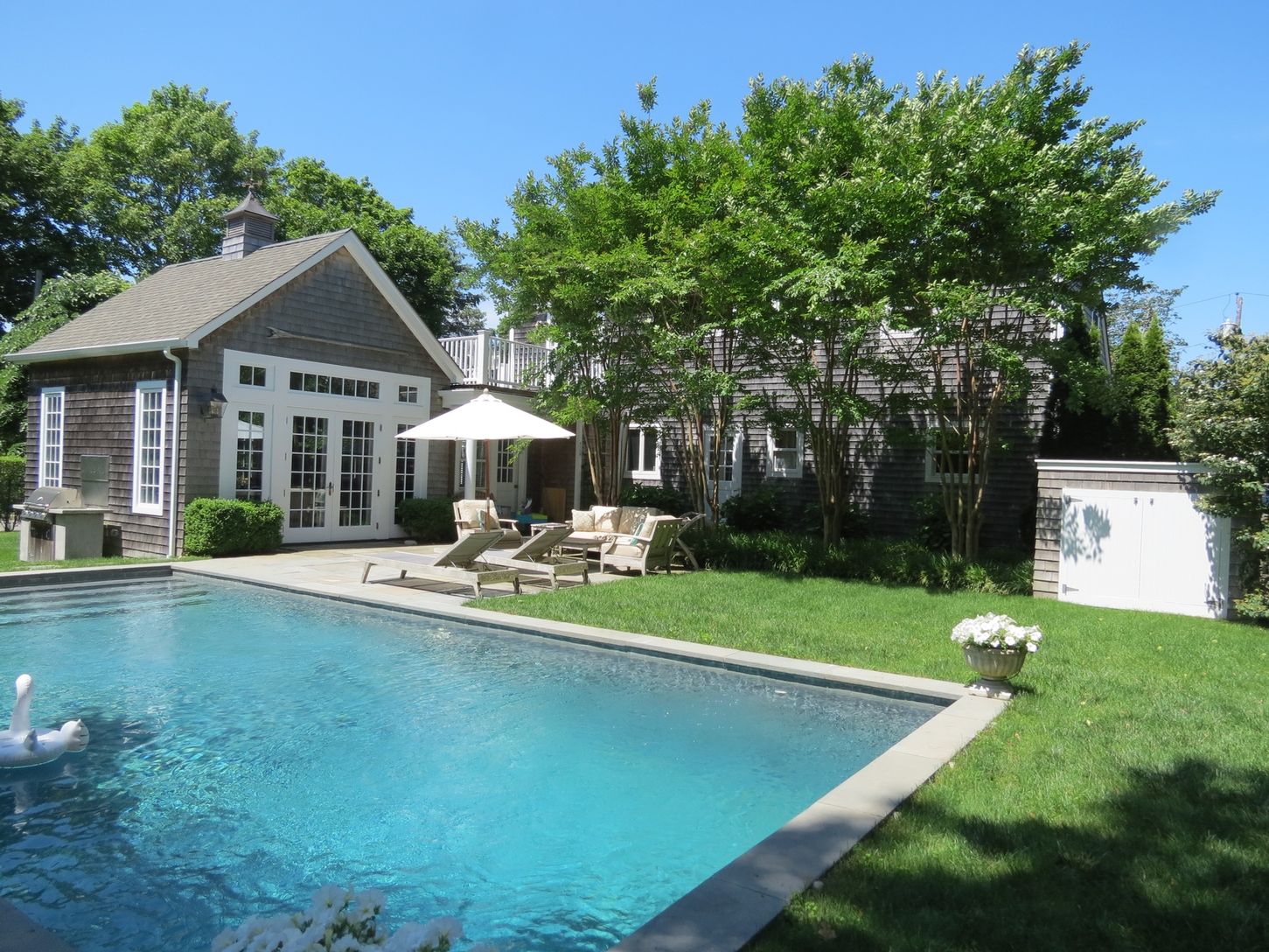 Rental Registration #: 16-1,158 On a small cul-de-sac at the edge of East Hampton Village you'll find this stunning renovation of a classic Hamptons cottage. Four bedrooms, four baths, large and inviting great room with French doors to the patio with heated gunite pool and gardens make this rental truly inviting. Gorgeously furnished; sleek and modern kitchen; traditional living room with fireplace; central air; upstairs and downstairs masters