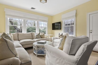 Summer luxury living brought to a new level. One of the most charming cottages located in East Hampton Village. Spend a few perfect weeks in heaven. There is a total of 2 bedrooms and 2 and half baths, in approximately 2,000 square feet of private living areas. The entrance foyer welcomes you into a comfortable living room with high ceilings and large expansive windows letting in the natural light. The living room and entry hall access a forma