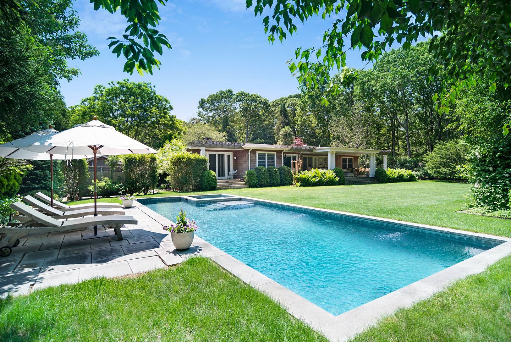 Rental Registration #: 25-373. Wonderful one level contemporary home. Just renovated with professional interior designer. Three ensuite bedrooms, sun-filled great room, oversized kitchen, den/media room, and separate dining room. Outdoor entertaining areas include dining patio with trellises, covered mahogany porch, lush landscaping surrounding gunite pool with hot tub. Field views. Listing ID 755563