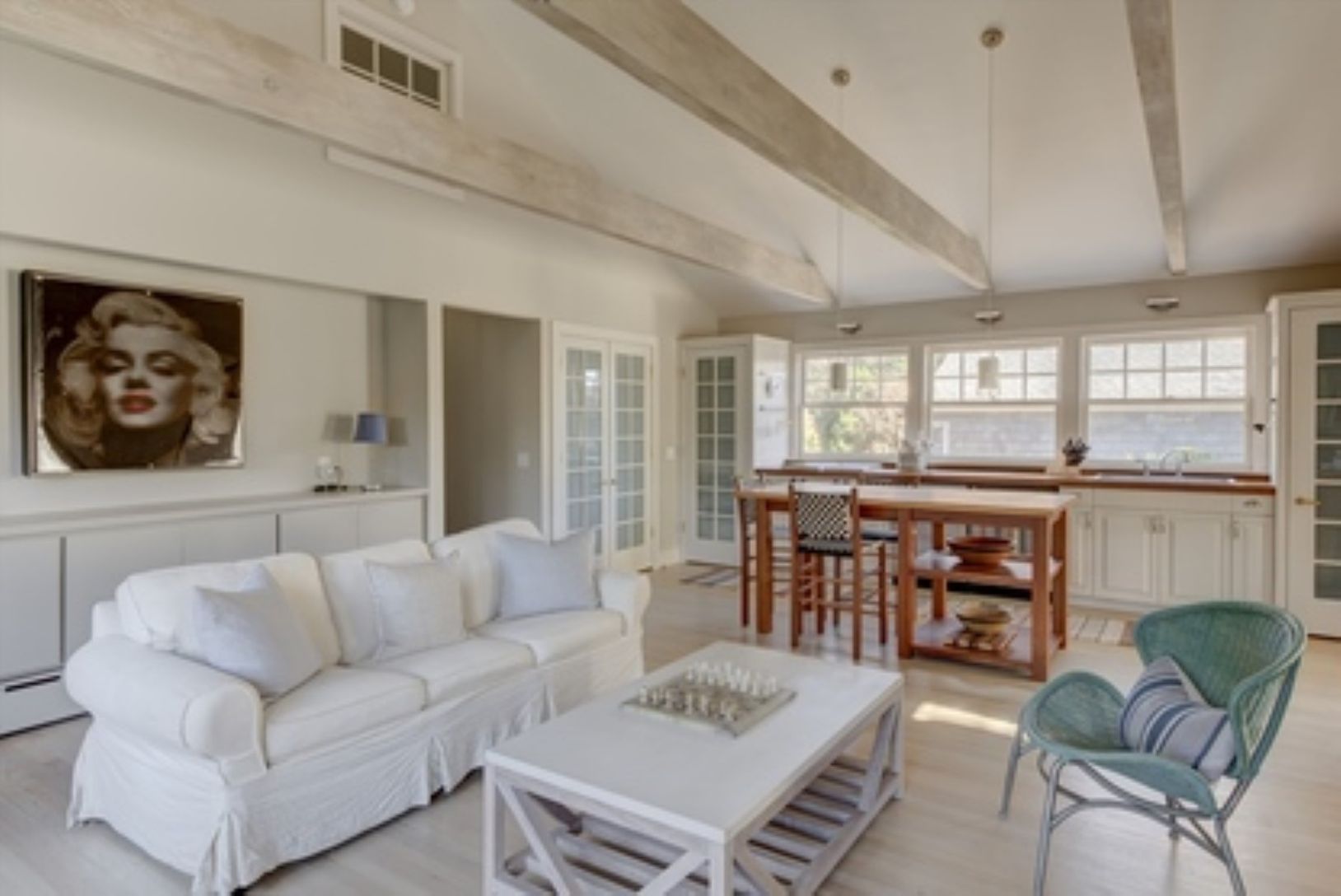 East Hampton Village Fringe Cottage. Charming two bedroom with an open living plan. Fresh kitchen opens to the large living area with fireplace, gorgeous dining room, a loft with two twin beds and garage. Stylish home with great garden and outdoor area with a gas grill. This home is located an easy distance to the village of East Hampton, Ocean Beaches and everything the Hamptons has to offer.