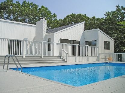 Rental Registration #: 18-1360 Handsome one-story contemporary enjoys a very private setting with extensive decking and a heated pool. The house offers a thoughtfully designed floor plan, with a master suite on one side and two additional bedrooms with bath on the other side. Fireplace, central air-conditioning with two zones makes this a very energy-efficient home. Easily accessible to East Hampton Village, local waterfront dining and Amagan