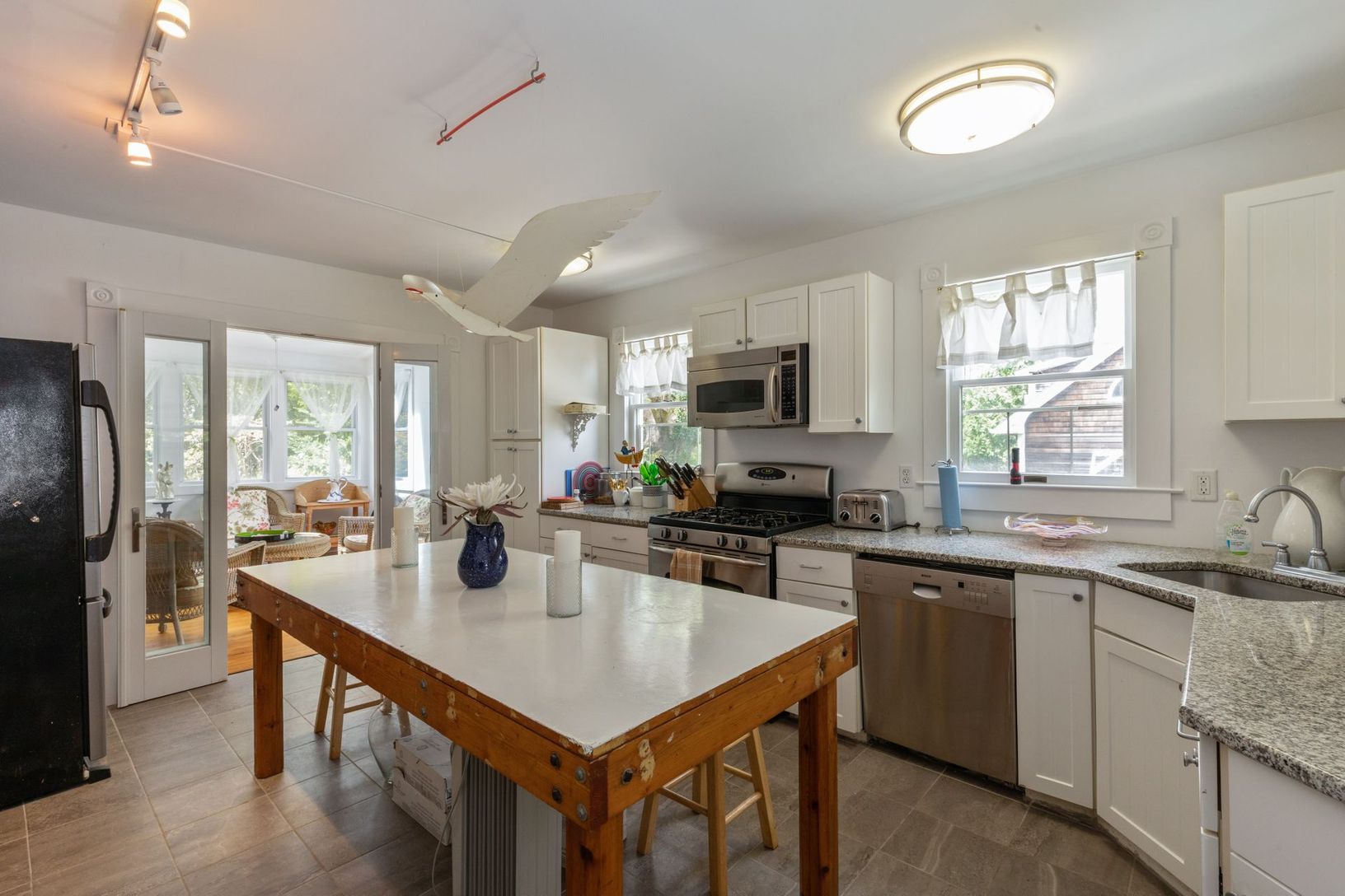 Enjoy easy summer living in this lovely, light and airy renovated three-bedroom, two-bathroom East Hampton home. Charm abounds throughout - from the double living rooms opening onto the spacious outdoor deck, the French doors opening from the sun room, or the new gourmet kitchen with all new appliances. Just a minute to village shops, restaurants and museums, the train station and a short trip to ocean beaches.