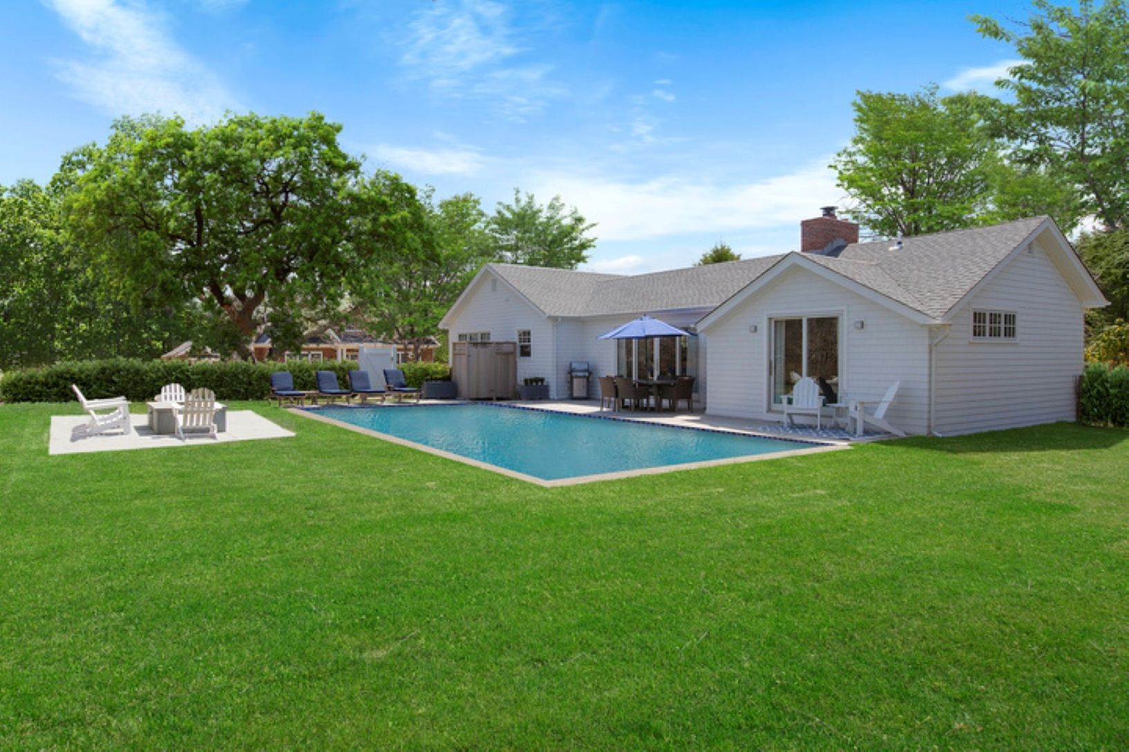 Rental Registration #: 18-1830 This village fringe one level home is completely renovated and is ready for your summer enjoyment. Beautifully decorated with brand new furnishings this really is a wonderful home. There is gorgeous landscaping surrounding the heated, gunite pool offering lots of privacy as well. In addition the outdoor fire pit surrounded by a lovely blue stone patio is the icing on the cake. As an added bonus, all of this is lo