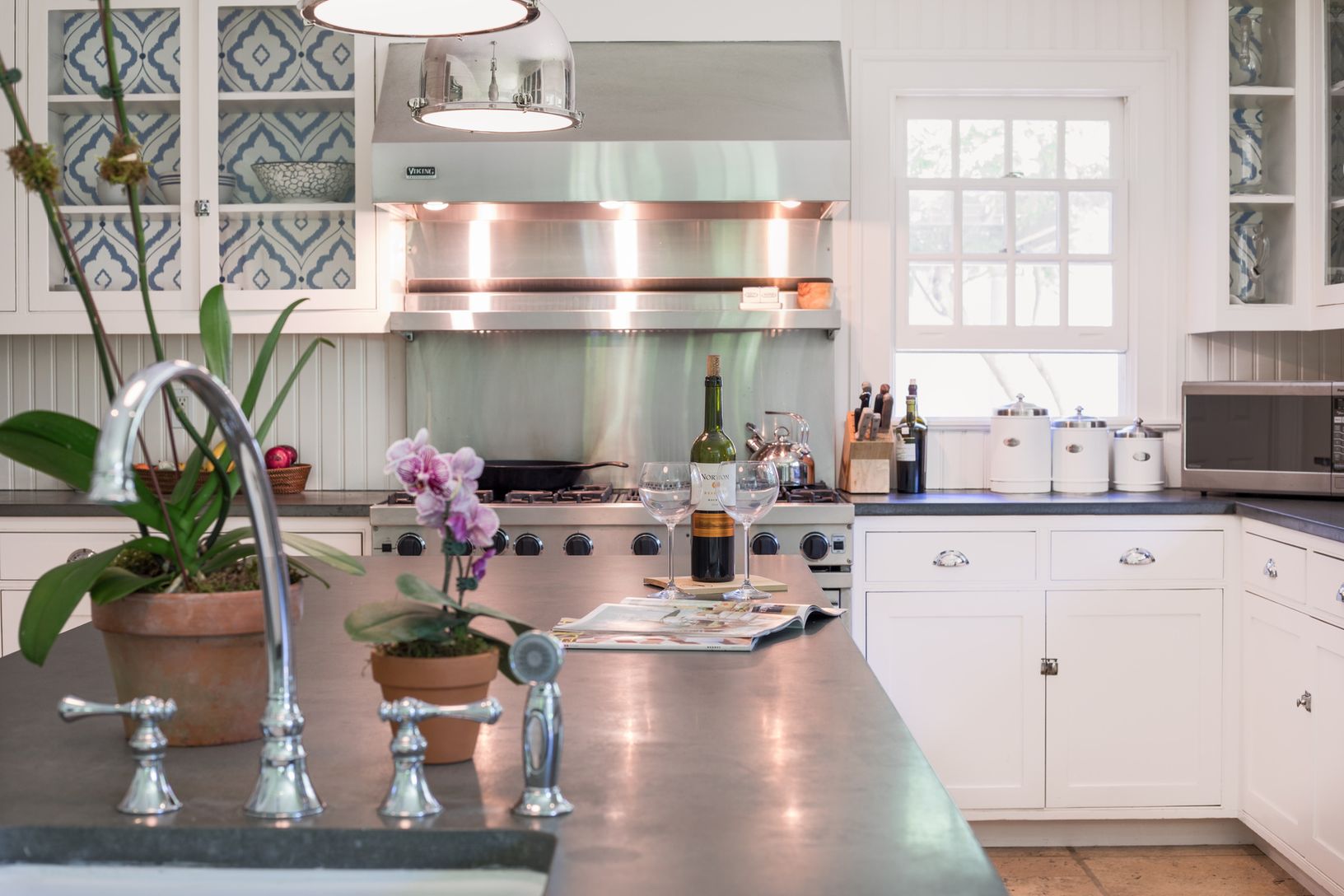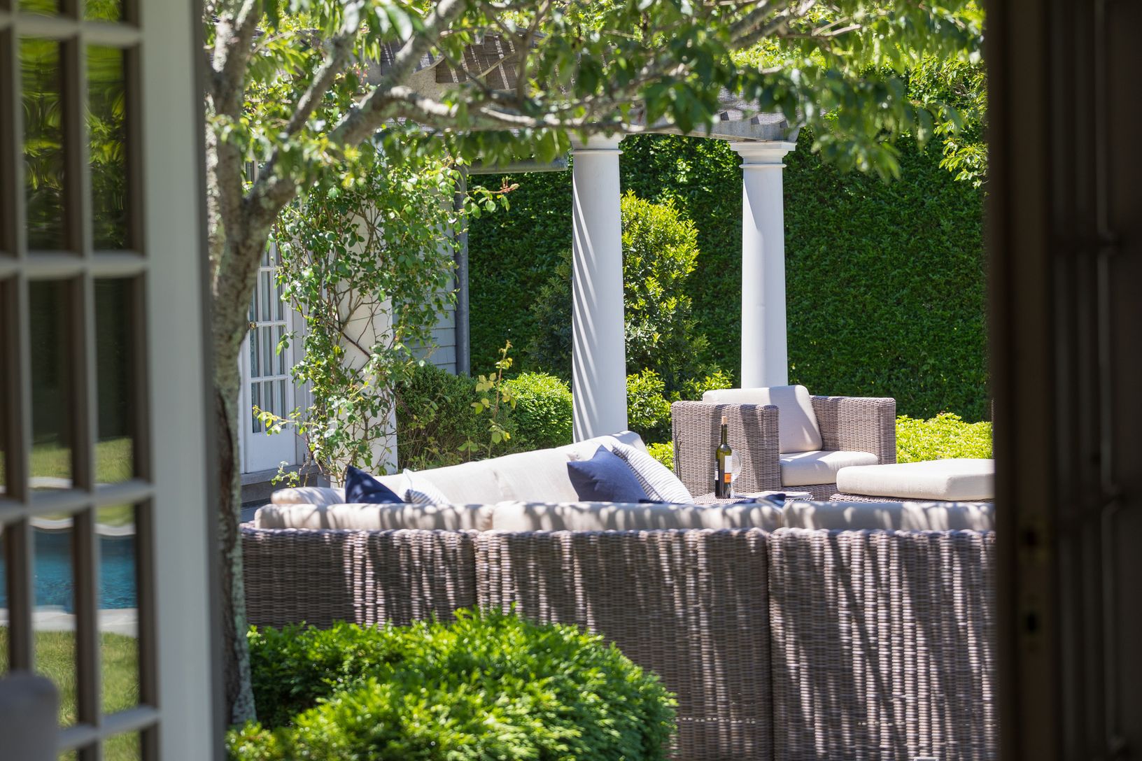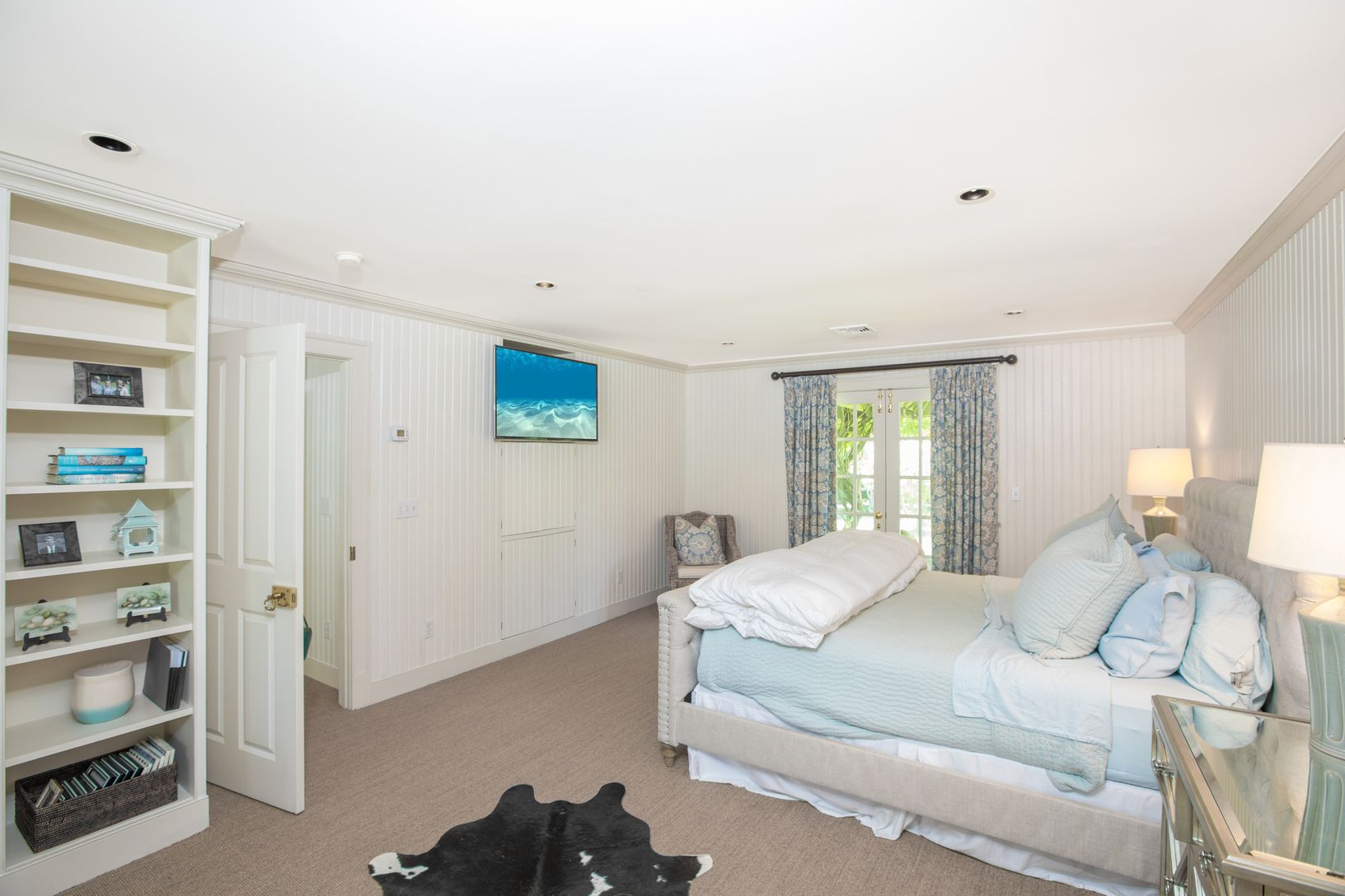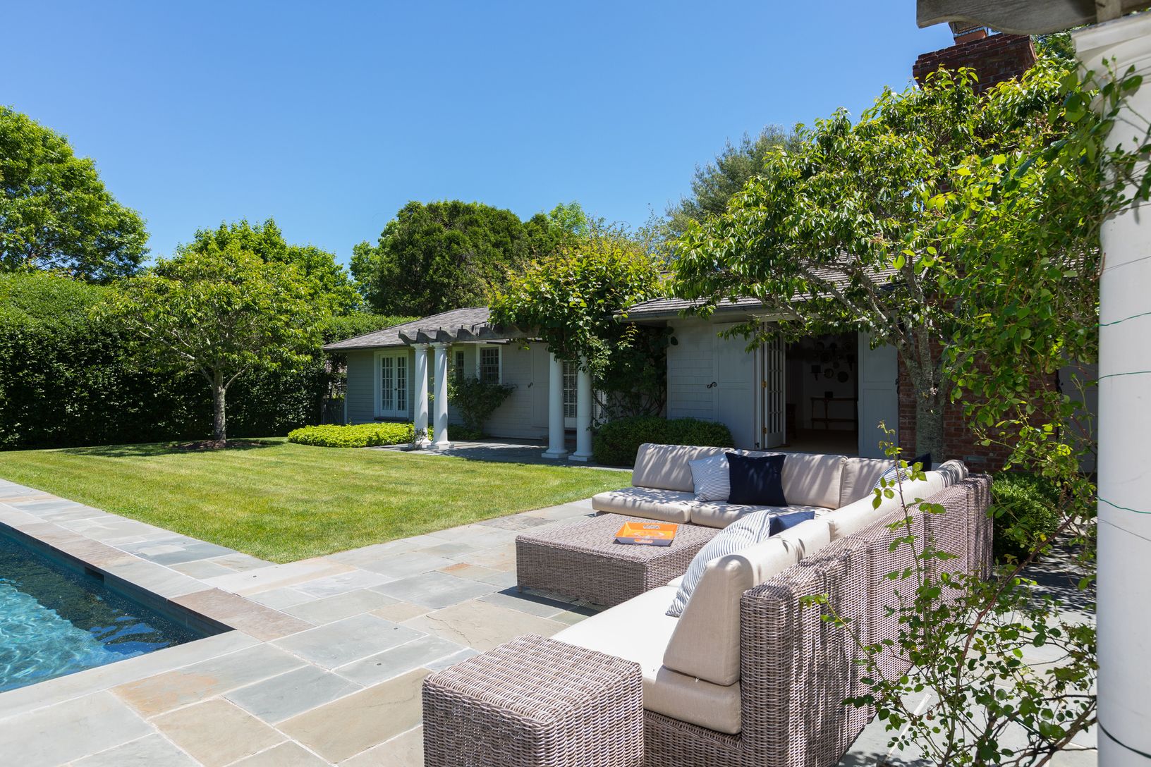 Impeccably crafted English-style sensibility paired with a designer's own furnishings create a unique and inviting oasis on this perfectly manicured 1 +/- acre property. Open, light-filled interiors, in a soft palate with expansive windows and French doors merge indoor and outdoor spaces from every side. Master suite with library and two baths sits a cool distance from the en-suite family bedrooms. An expansive chef's kitchen is the heart of t