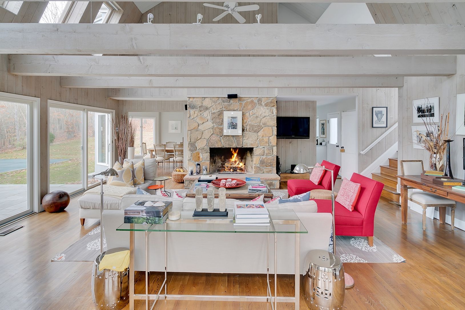 Rental Registration #: 18-1448 Stroll to the Bay from this stylish and sexy Barn style home nestled in the Northwest Woods. This bright and cheery cottage is beautifully decorated in a modern and chic style, and features 3 bedrooms, 2.5 bathrooms, double height great room with beamed ceiling and field stone fireplace, open kitchen and separate dining room. The shy two acre property is surrounded by reserve on two sides with a wonderful pool an