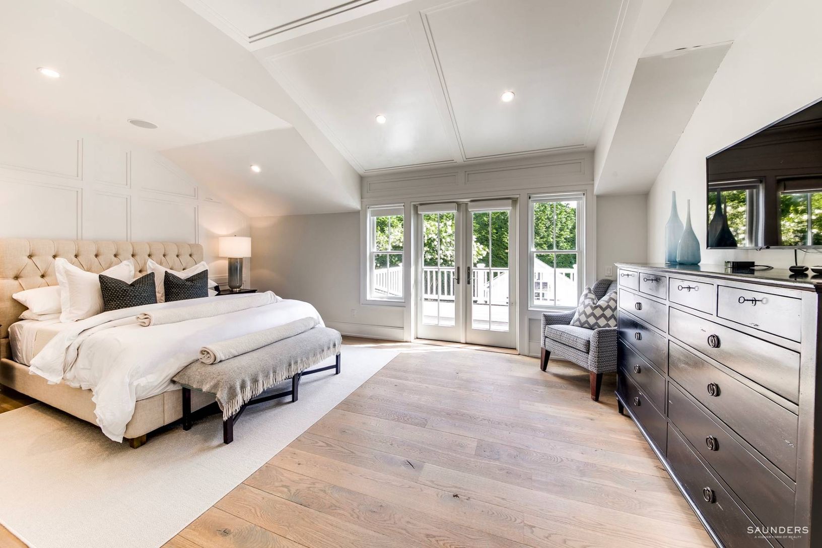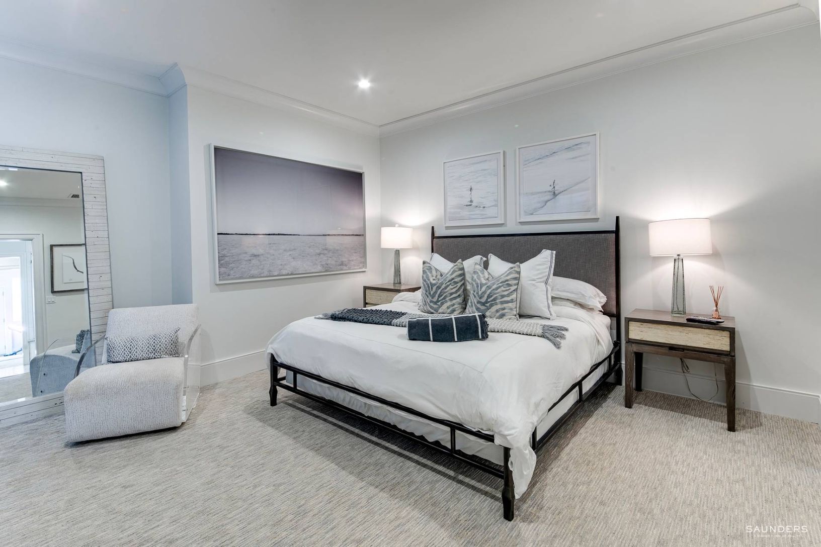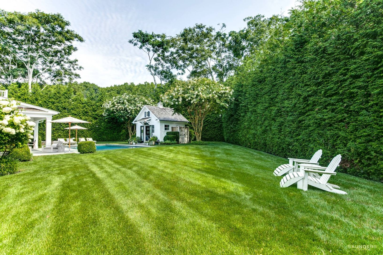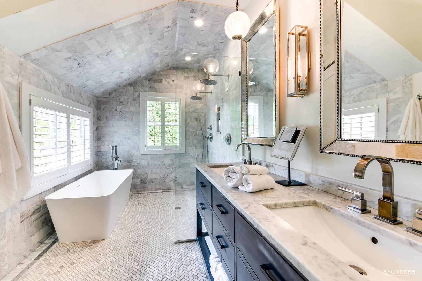 This custom built modern farmhouse-style home has all the well-heeled amenities and accoutrements one could want while also being very close to the Village of East Hampton. Located at the end of a cul-de-sac, this 4800+ sq.ft. residence features five bedrooms five and half baths, formal living & dining rooms, an eat-in gourmet kitchen, a separate office with ensuite bath, as well as a finished lower level that houses a gym and wine cellar.