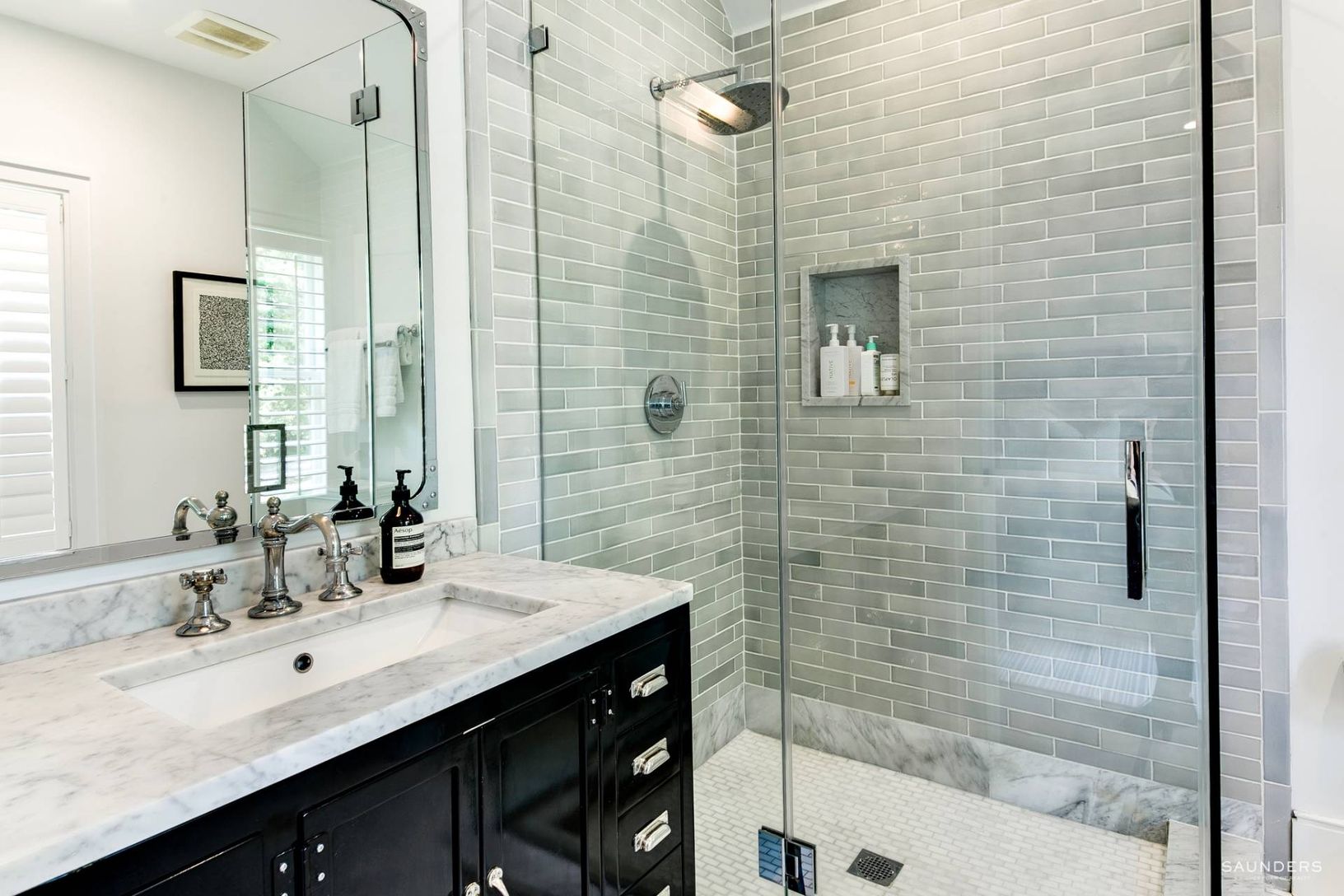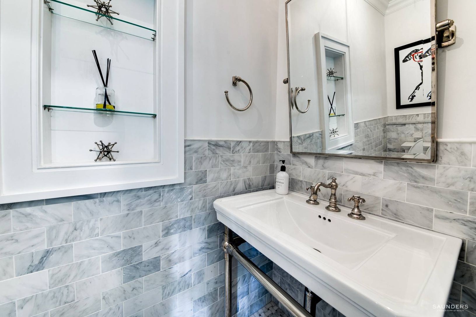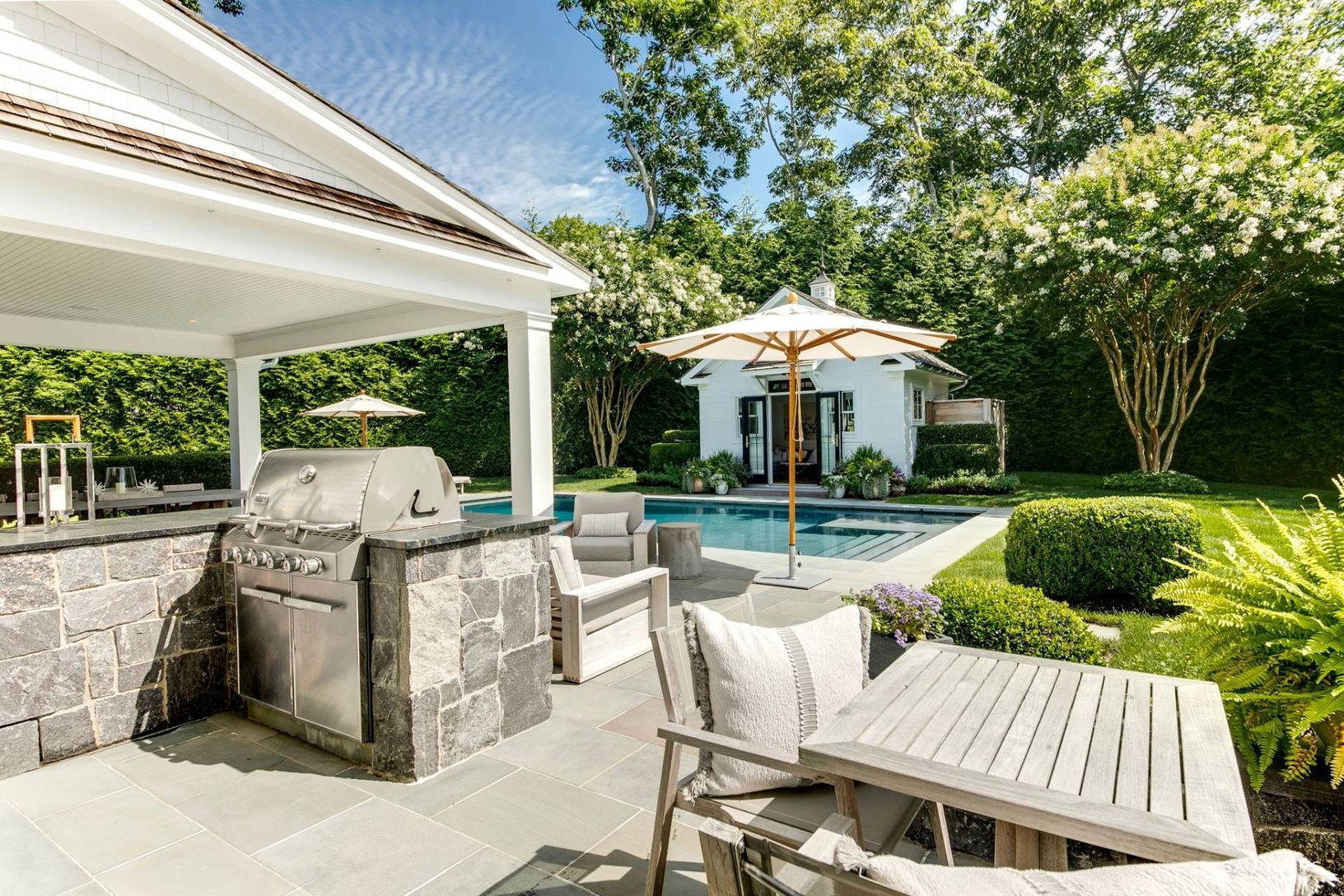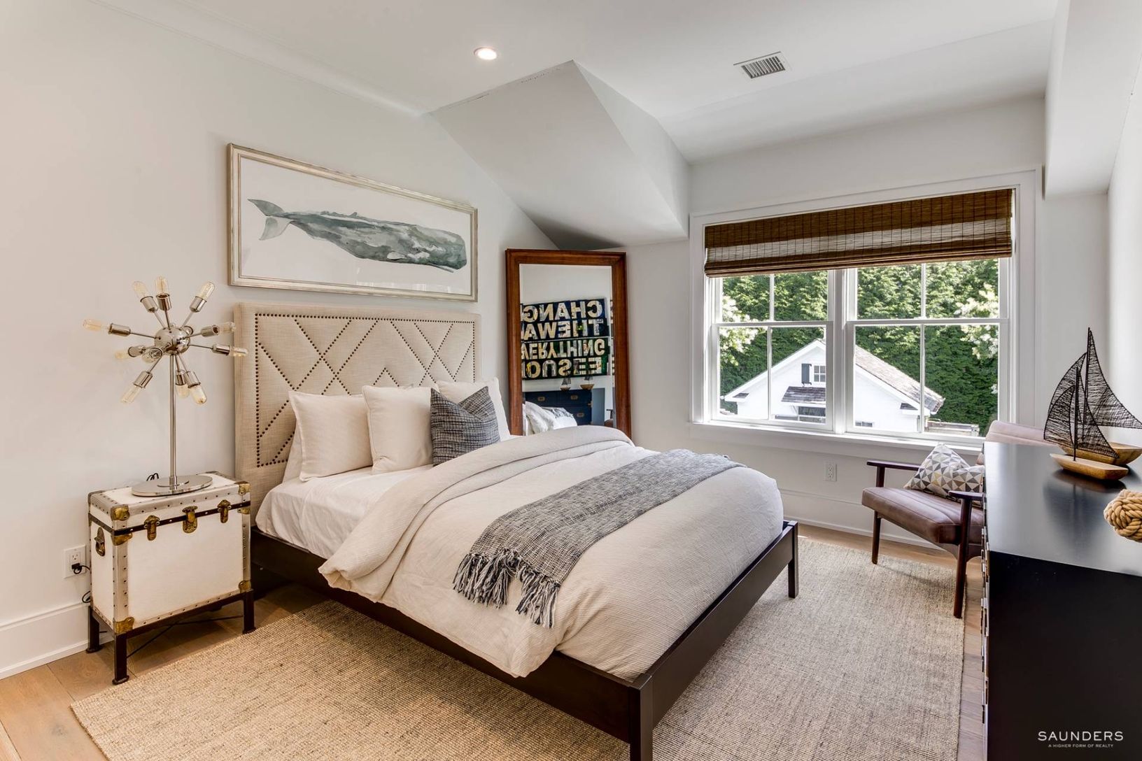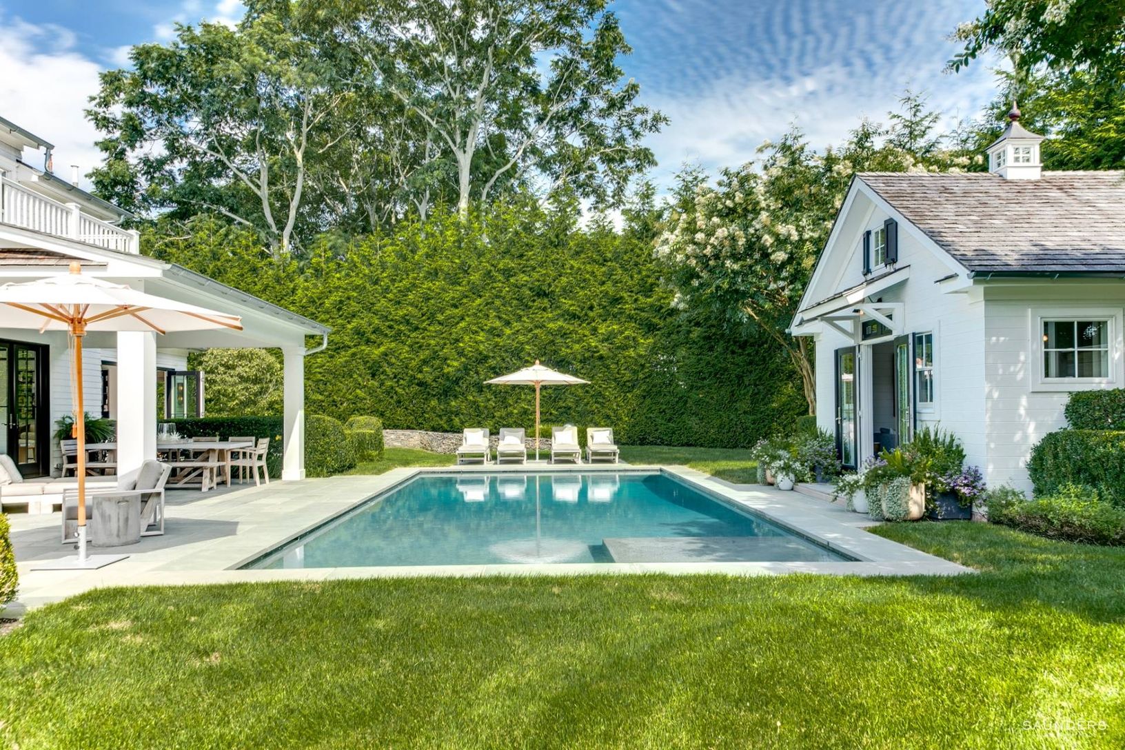 This custom built modern farmhouse-style home has all the well-heeled amenities and accoutrements one could want while also being very close to the Village of East Hampton. Located at the end of a cul-de-sac, this 4800+ sq.ft. residence features five bedrooms five and half baths, formal living & dining rooms, an eat-in gourmet kitchen, a separate office with ensuite bath, as well as a finished lower level that houses a gym and wine cellar.