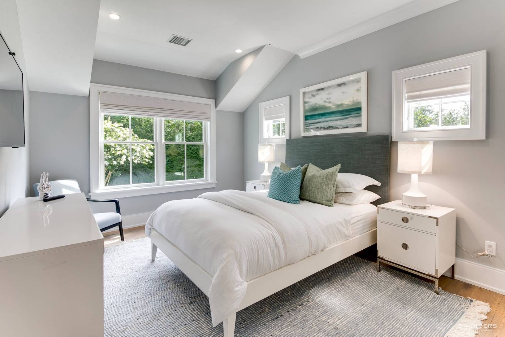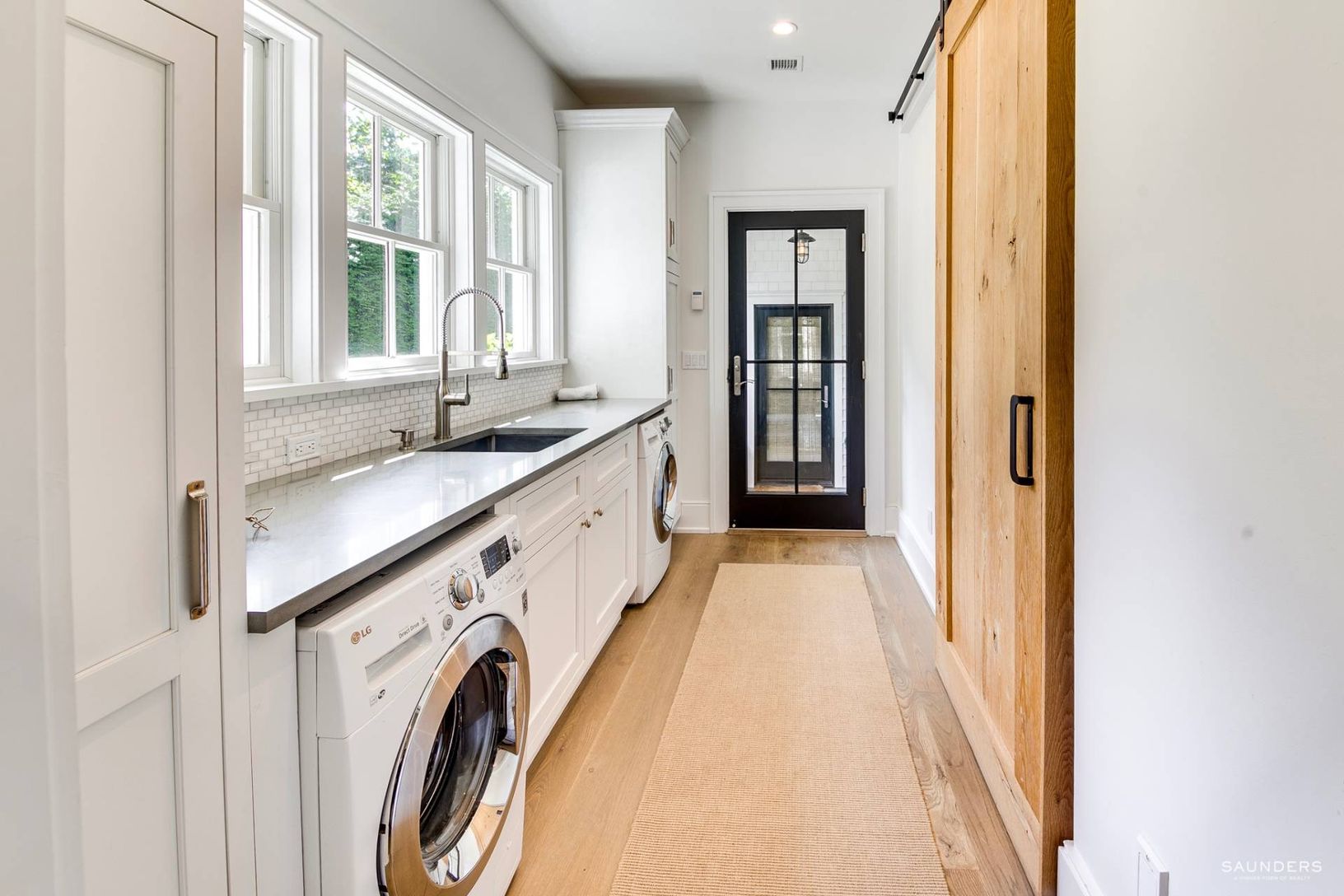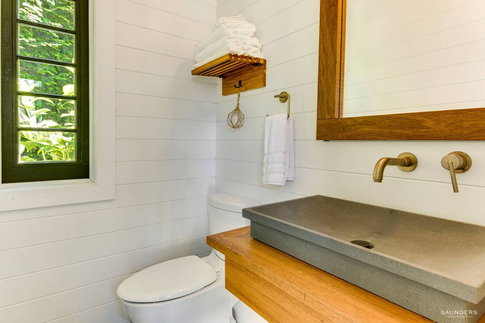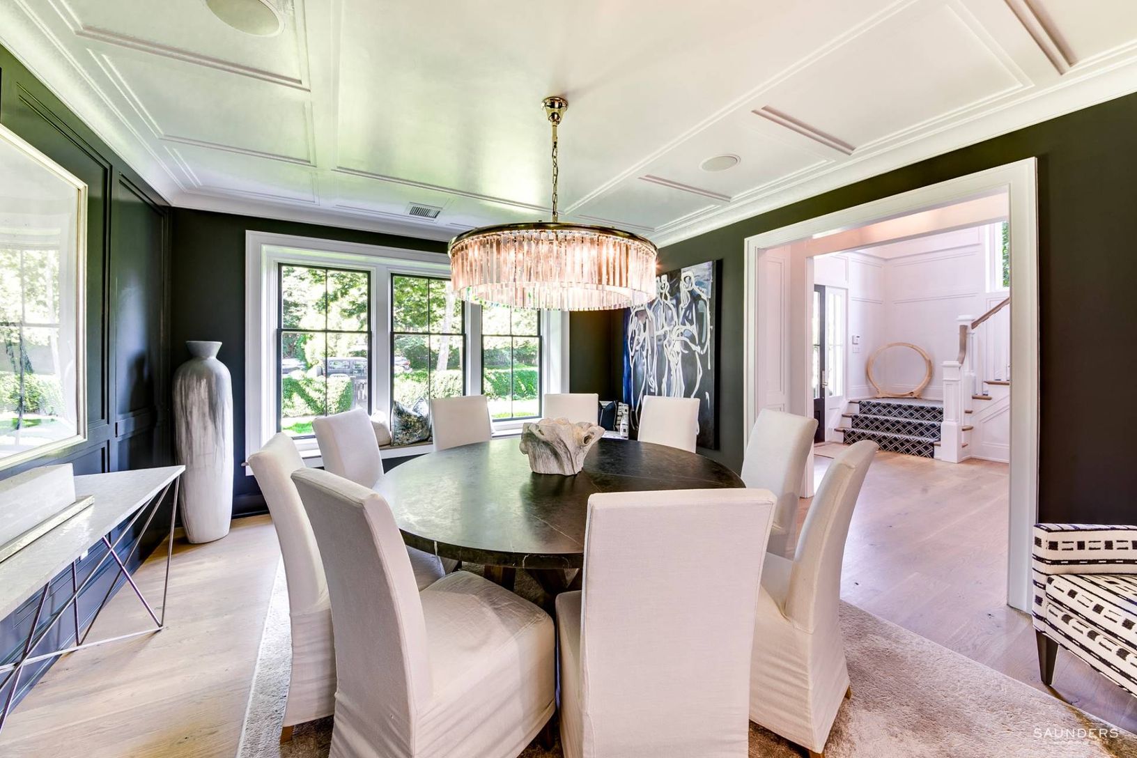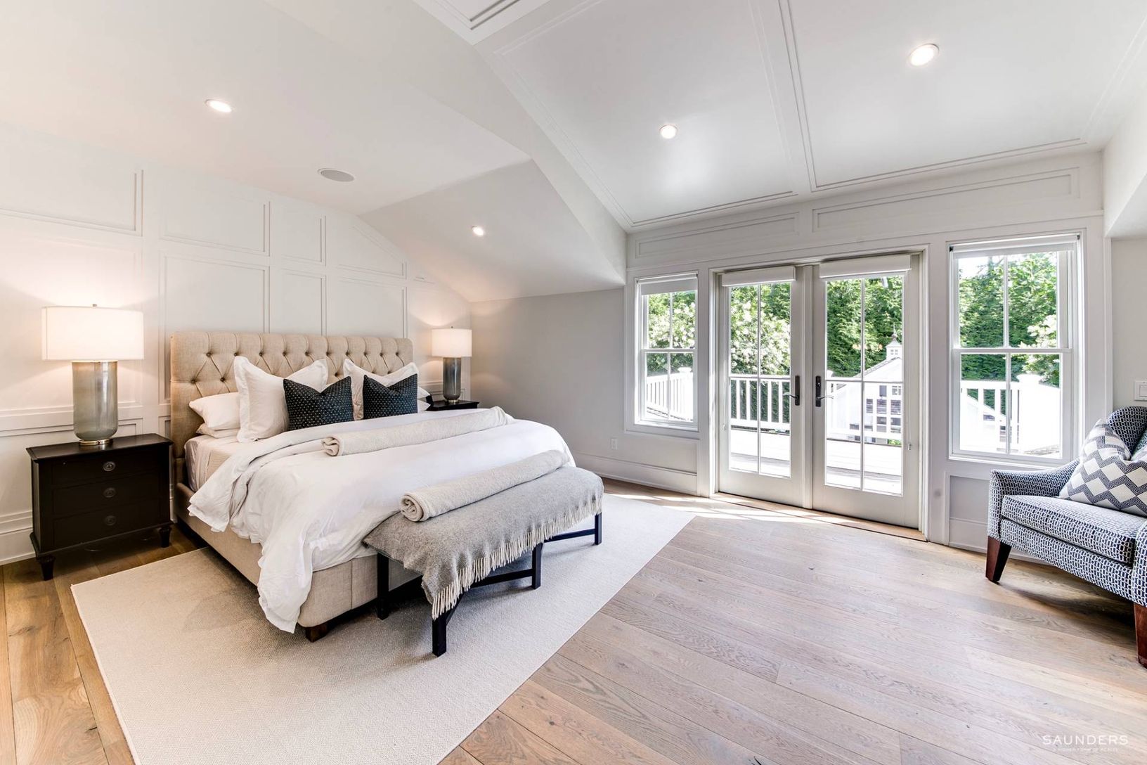 This custom built modern farmhouse-style home has all the well-heeled amenities and accoutrements one could want while also being very close to the Village of East Hampton. Located at the end of a cul-de-sac, this 4800+ sq.ft. residence features five bedrooms five and half baths, formal living & dining rooms, an eat-in gourmet kitchen, a separate office with ensuite bath, as well as a finished lower level that houses a gym and wine cellar.