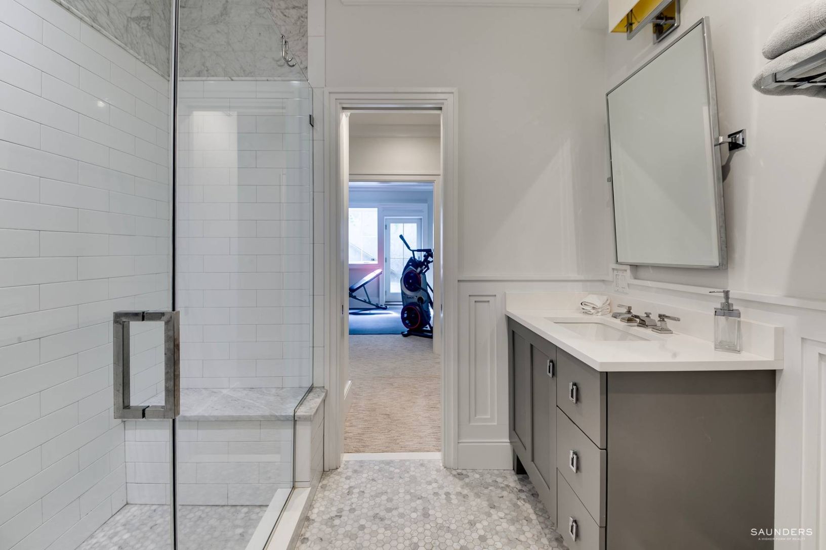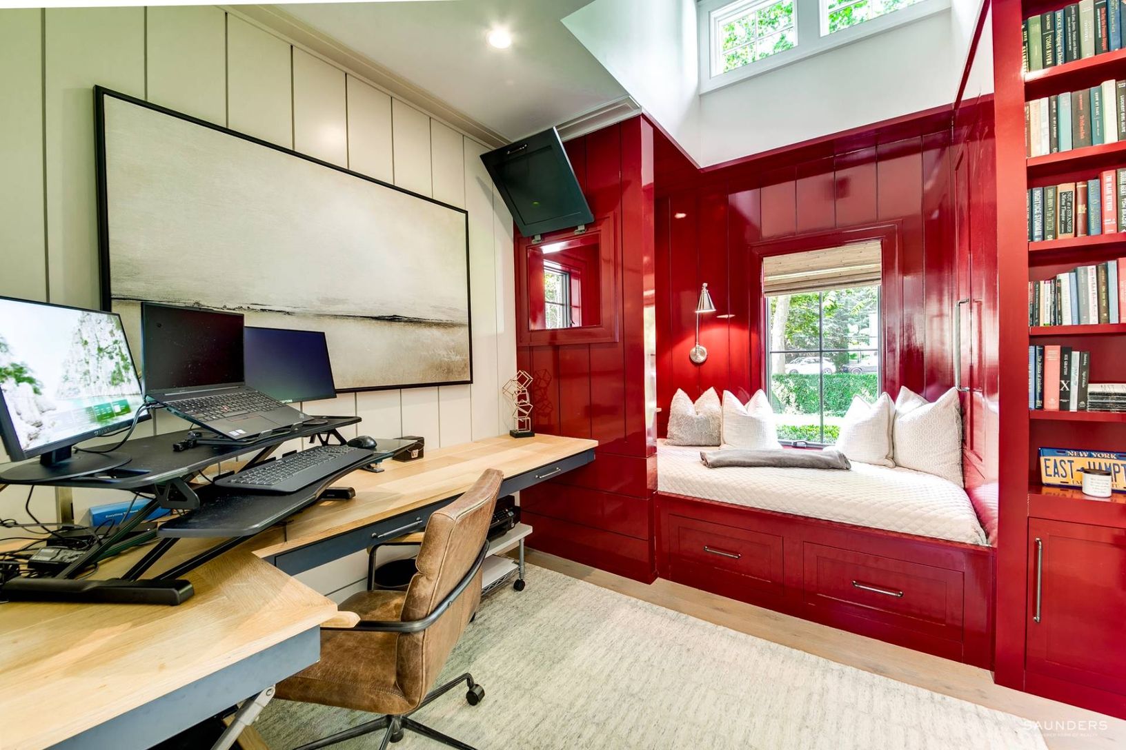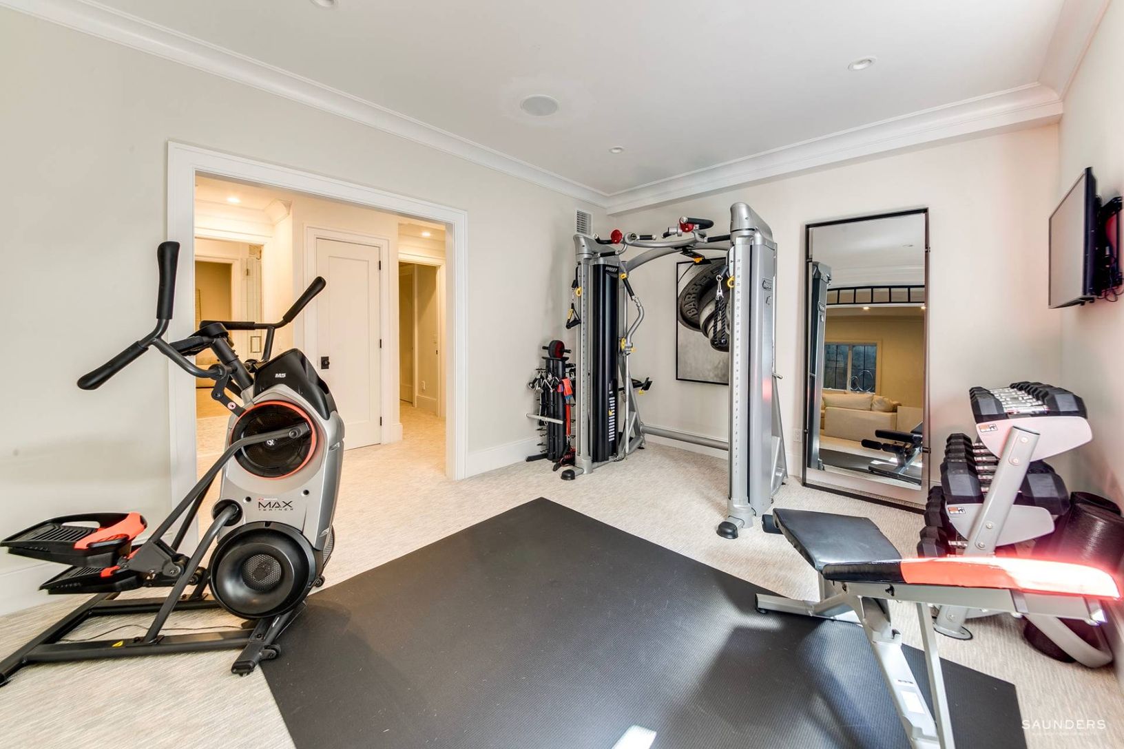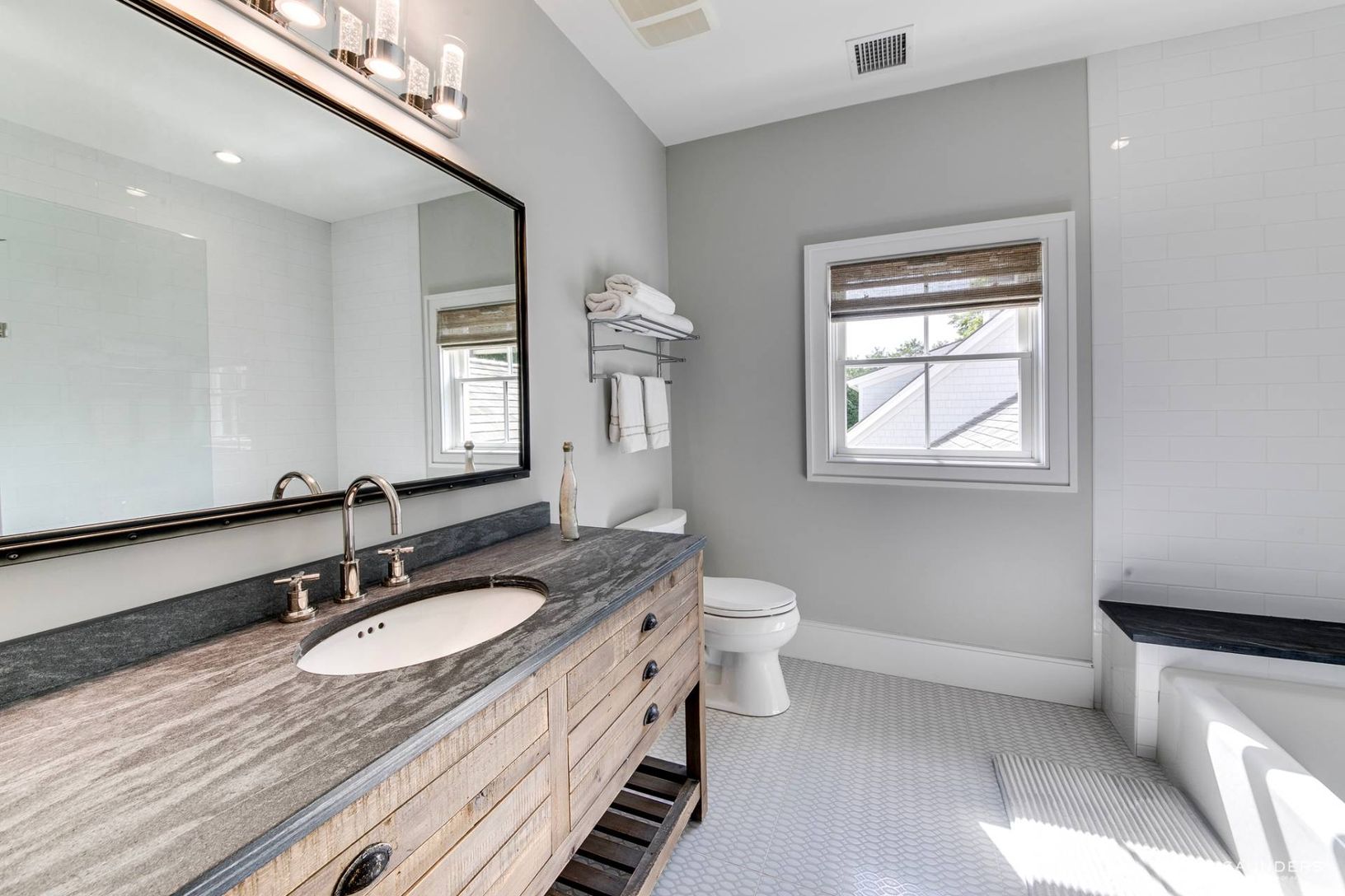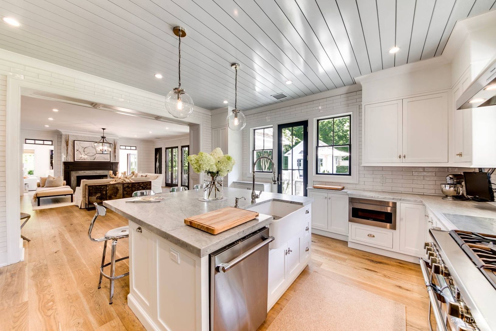 This custom built modern farmhouse-style home has all the well-heeled amenities and accoutrements one could want while also being very close to the Village of East Hampton. Located at the end of a cul-de-sac, this 4800+ sq.ft. residence features five bedrooms five and half baths, formal living & dining rooms, an eat-in gourmet kitchen, a separate office with ensuite bath, as well as a finished lower level that houses a gym and wine cellar.