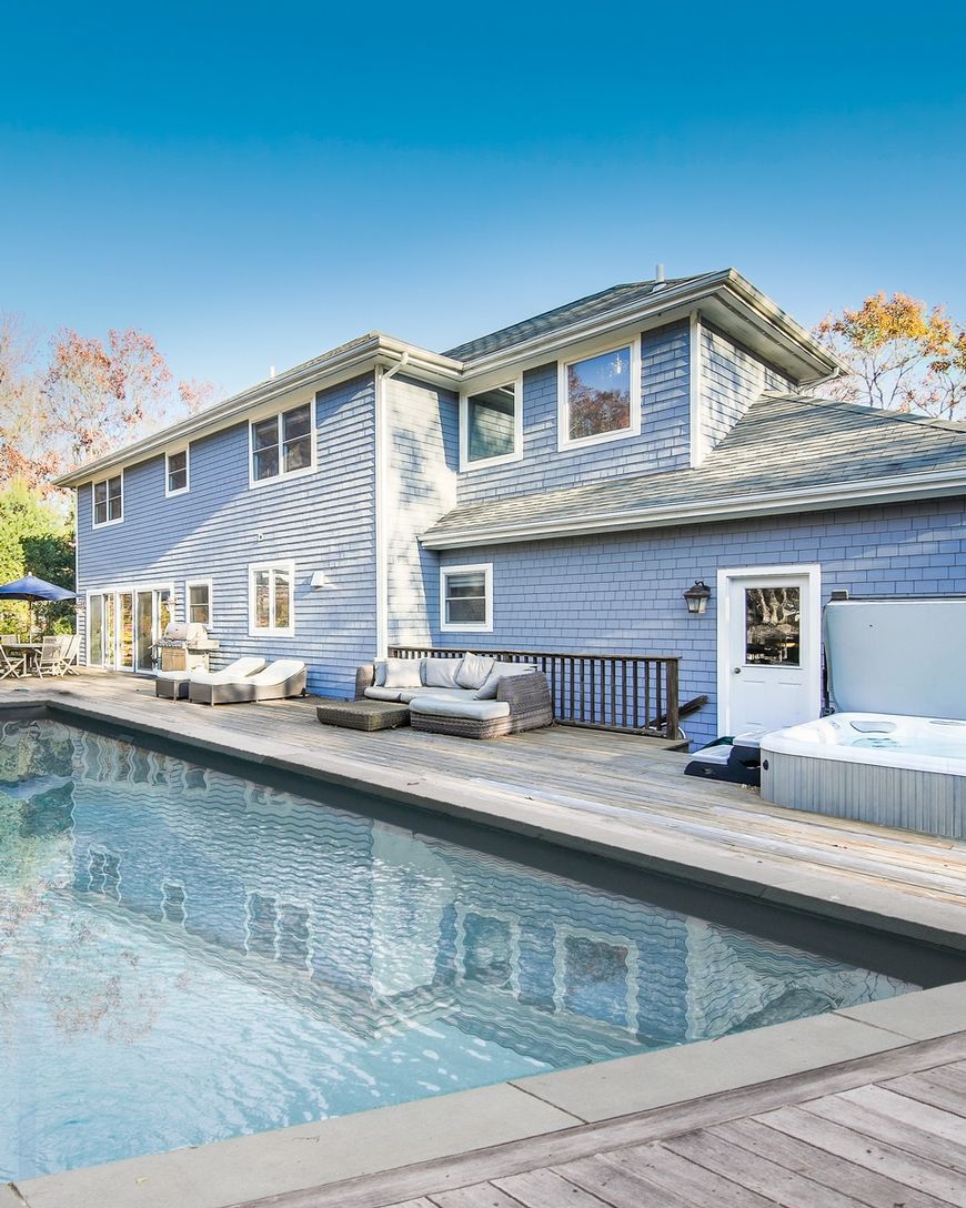 Rental Registration #: 18-2398 Sited on 2.20 acres at the end of a private road this chic East Hampton home has been beautifully renovated with stylish finishings throughout. The +/- 3000 sq. ft. floor plan has an open and easy flow with a total of five bedrooms and four bathrooms. The first floor features an open great room with fireplace, chef's kitchen with Carrara marble and stainless steel appliances, dining area, den, office, and a full