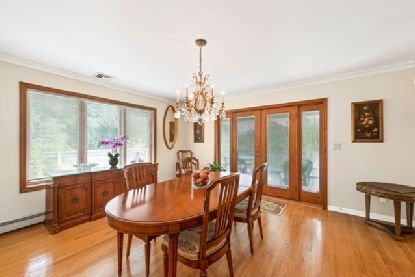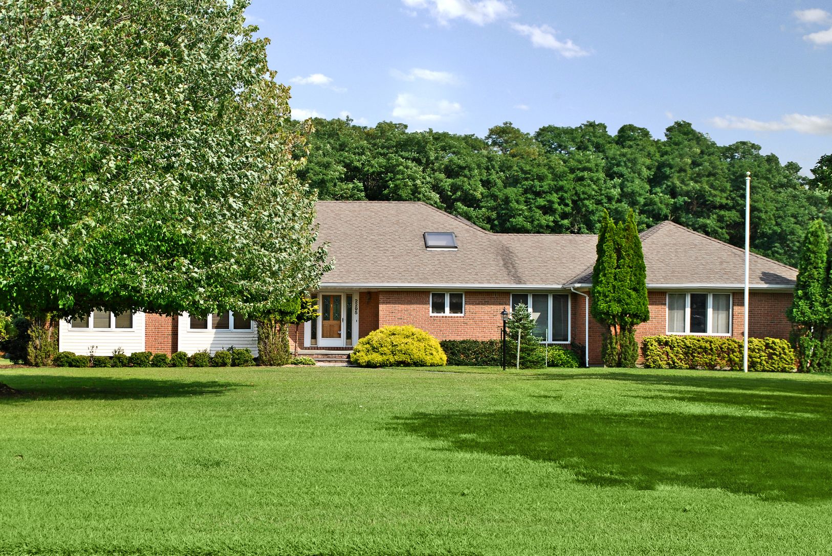 East Marion - Custom built Ranch. Light and spacious home centered on 1.13 acres. Superior quality construction. East-facing veranda, South-facing portico accessed by double French doors. Floor-to-ceiling marble masonry hearth; slate masonry front-walk and entrance, ornamental pears line blue stone driveway. Gracious simplicity throughout.