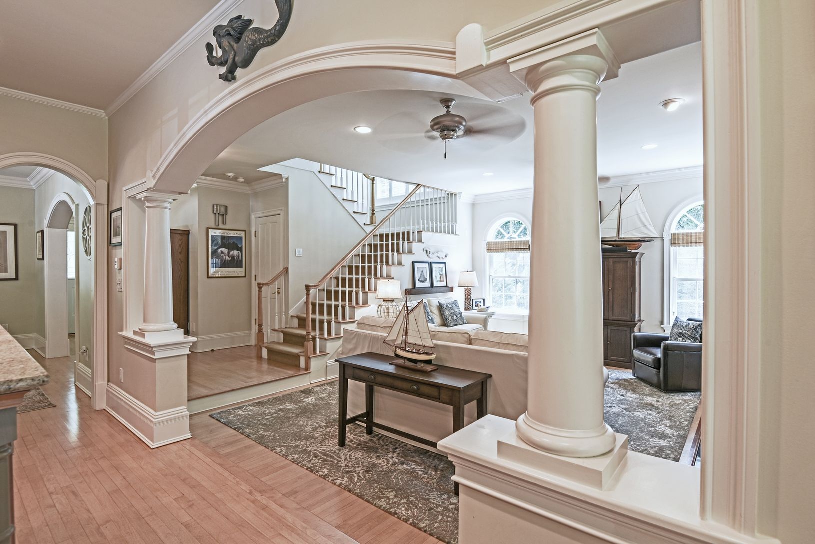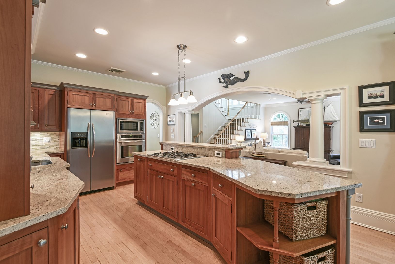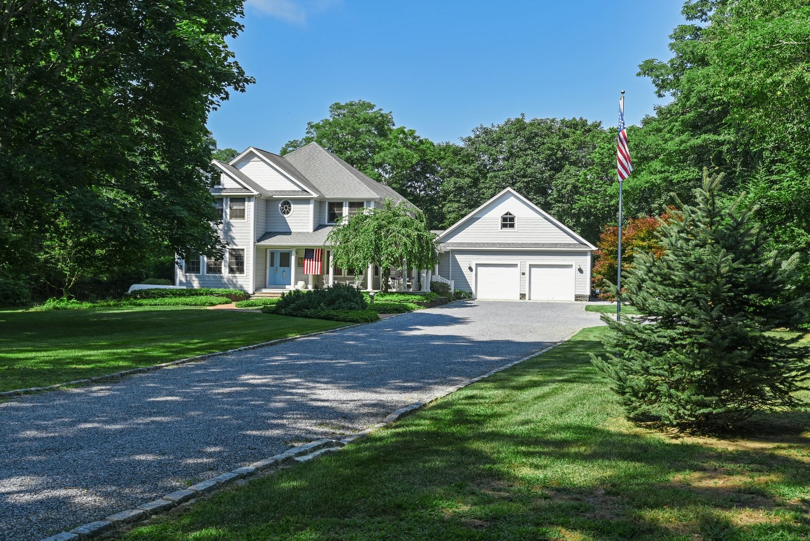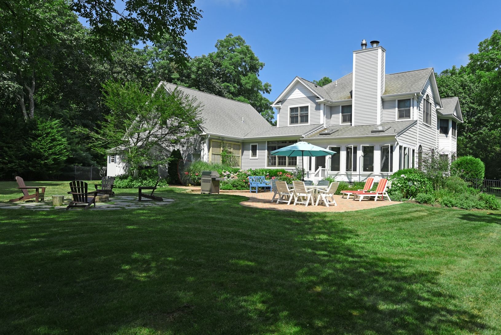 Down a long winding driveway, sited on 1.4+/- lush landscaped acres offering great privacy, sits a beautiful home for all seasons. A lovely wrap-around veranda greets you at the gracious front entrance where the main level features a living space with an open floor plan, chef's kitchen and breakfast area, formal dining room, and a den/office or 4th bedroom. The enclosed sun room looks directly out to the side and back yards. On the other si
