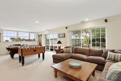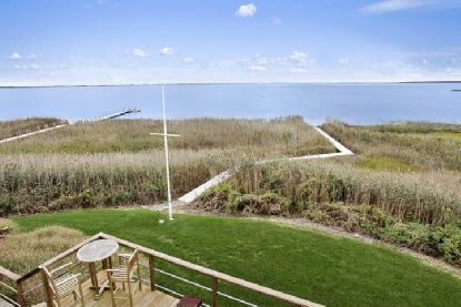 Beautiful traditional with over 200 feet on Moriches Bay and endless views... Set on just under five landscaped acres with a Har Tru tennis court, pond with waterfall, fabulous heated gunite pool, dock for a small boat, dock to a sandy beach, multi-level decking, and outdoor shower. With 7,000 square feet of fabulous living space, light filled bayfront living room with fireplace, oversized kitchen with top-of-the-lline appliances leading to th
